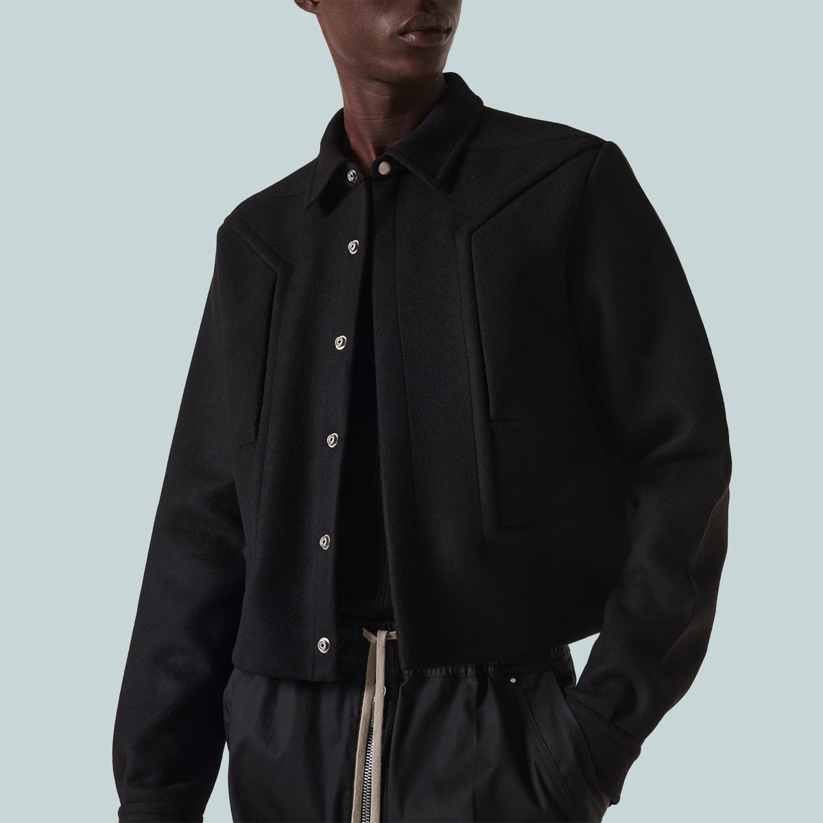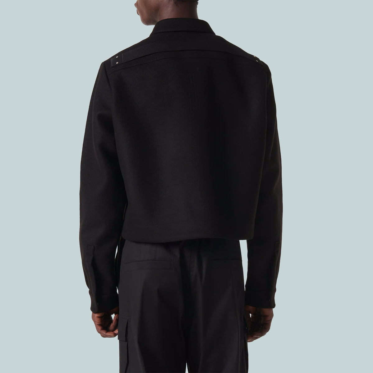 Rick Owens FW24 Porterville Alice strobe shirt in black mediumweight wool