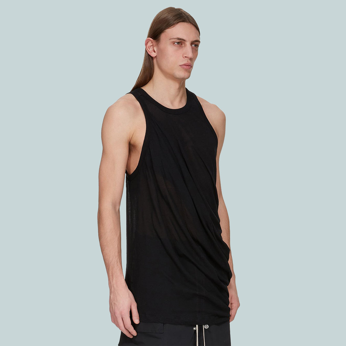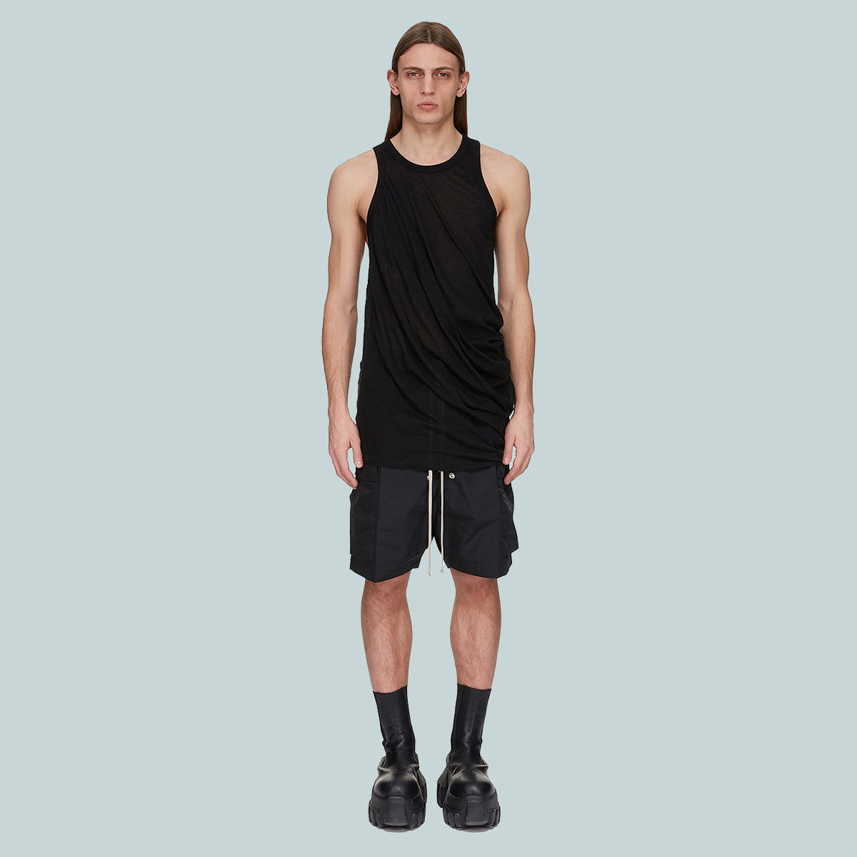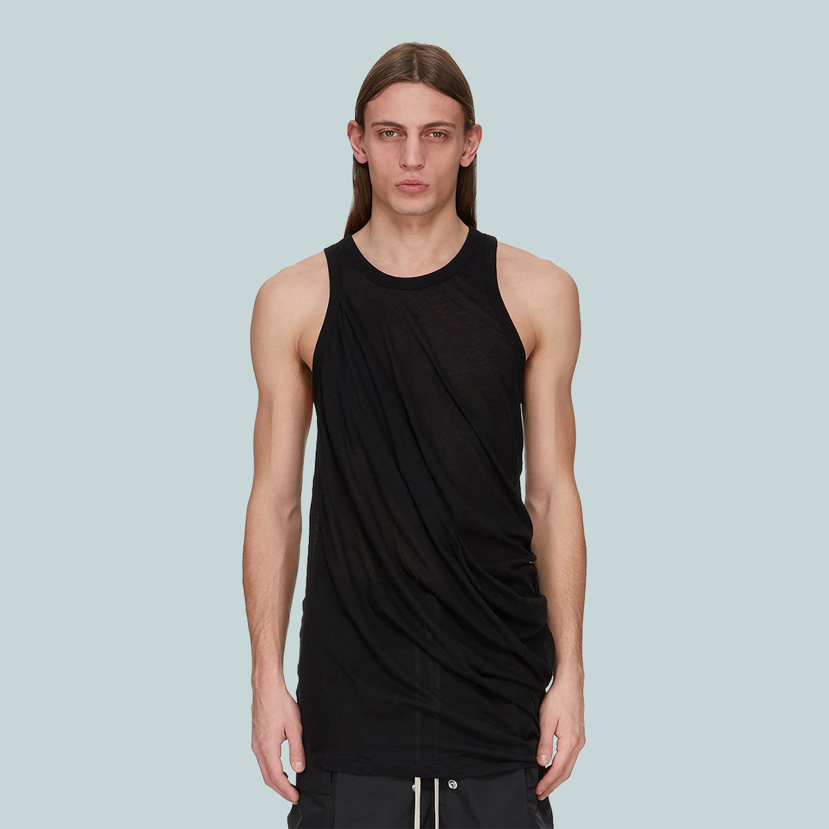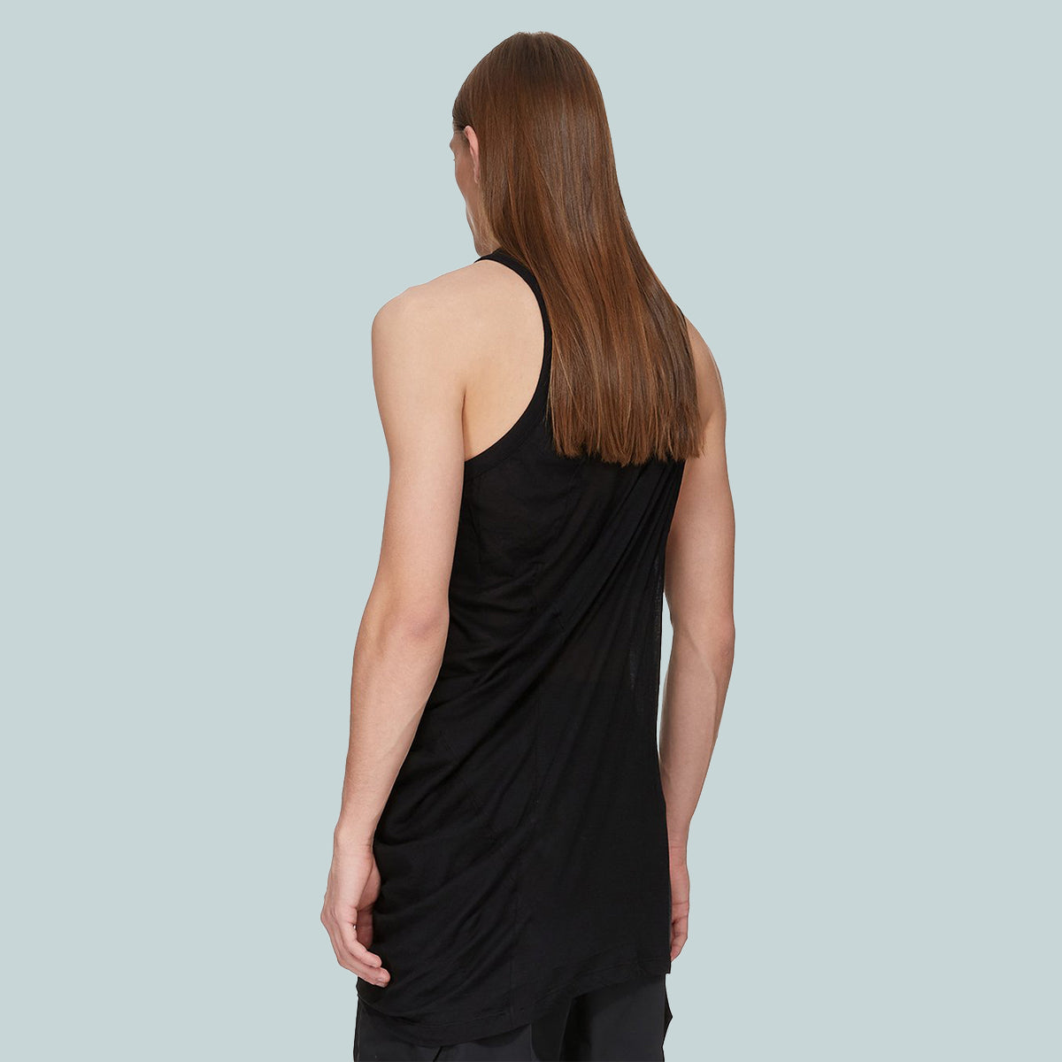 rick owens ss25 hollywood anthem tank in black viscose crepe jersey