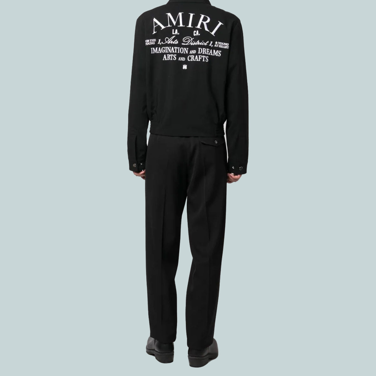 This blouson jacket celebrates Amiri's downtown la roots and the creative spirit of the city’s arts district. Crafted from a sturdy yet lightweight wool blend, this jacket is embroidered with house logo graphics on the back and chest and features front zip closure with custom Amiri hardware.