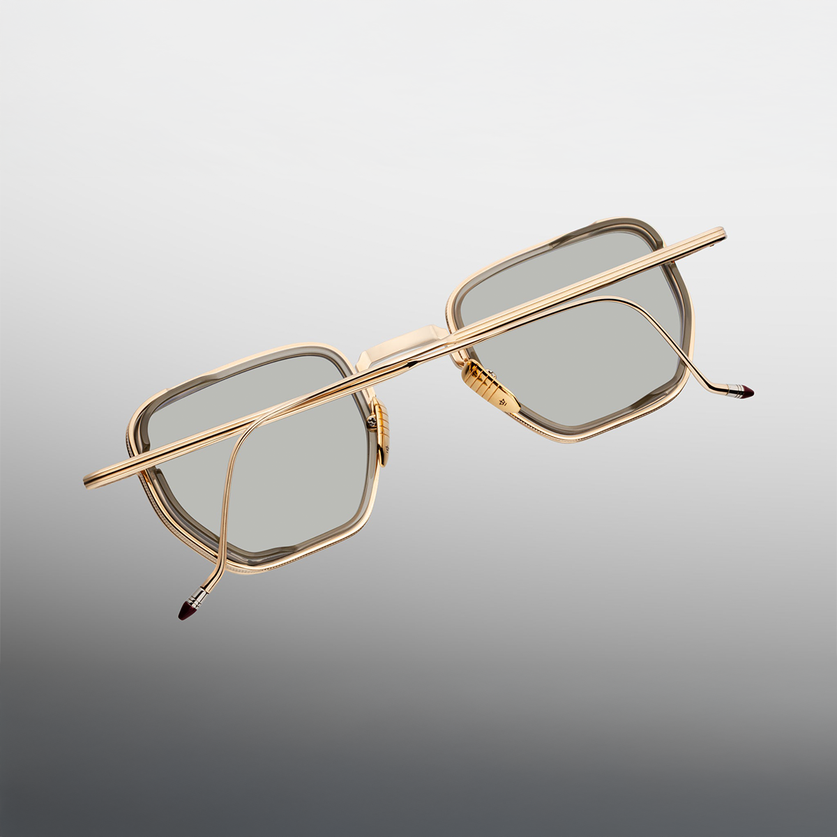 A subtle angular lens shape featuring 10mm cured acetate insert, grooved temple profiles and tailfin temple tips for additional curves and volume