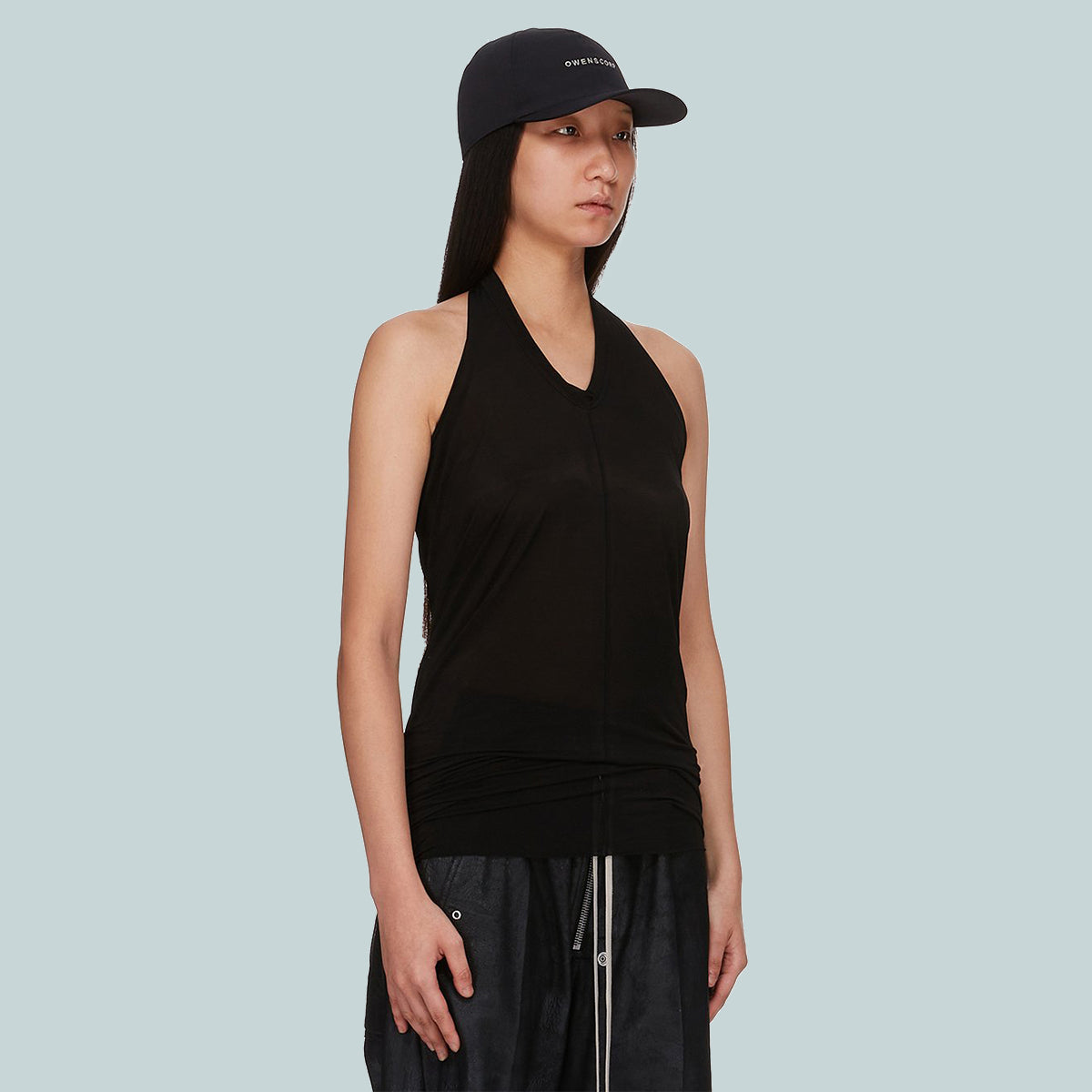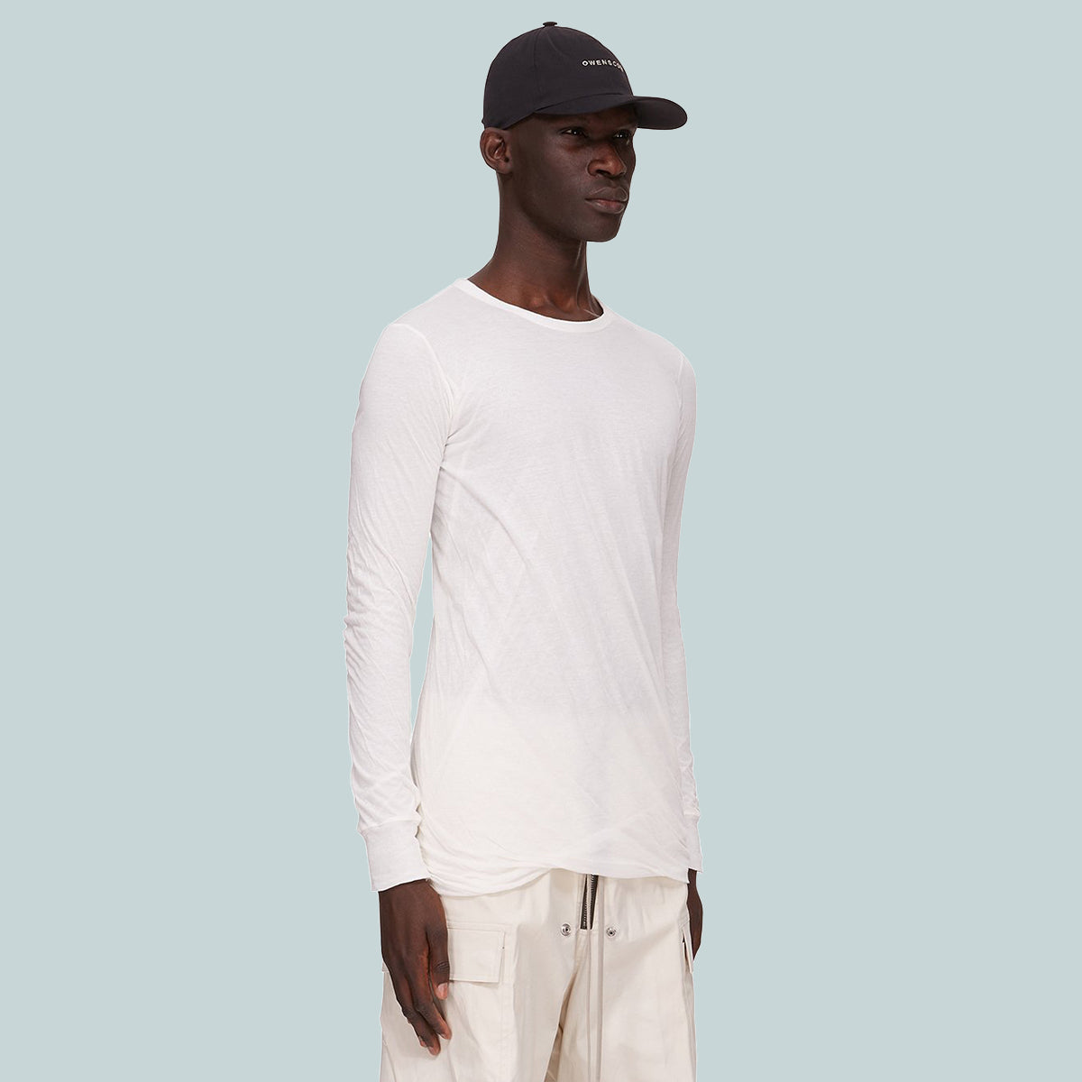 rick owens ss25 hollywood baseball cap in black/pearl owenscorp embroidered heavy cotton poplin