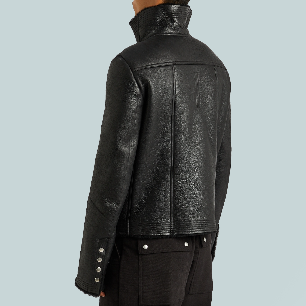 This heavyweight shearling lamb leather has a waxy and matte nappa finish and a soft curly fur.