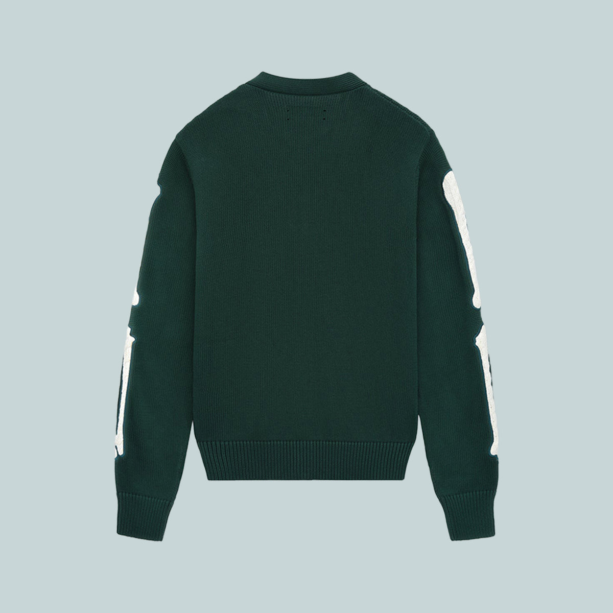 The Pre-Spring 2025 menswear collection reintroduces house icons in seasonal colors. Crafted in knit Egyptian cotton, the Bones Cardigan features the house's signature bones motif and embroidered script logo.