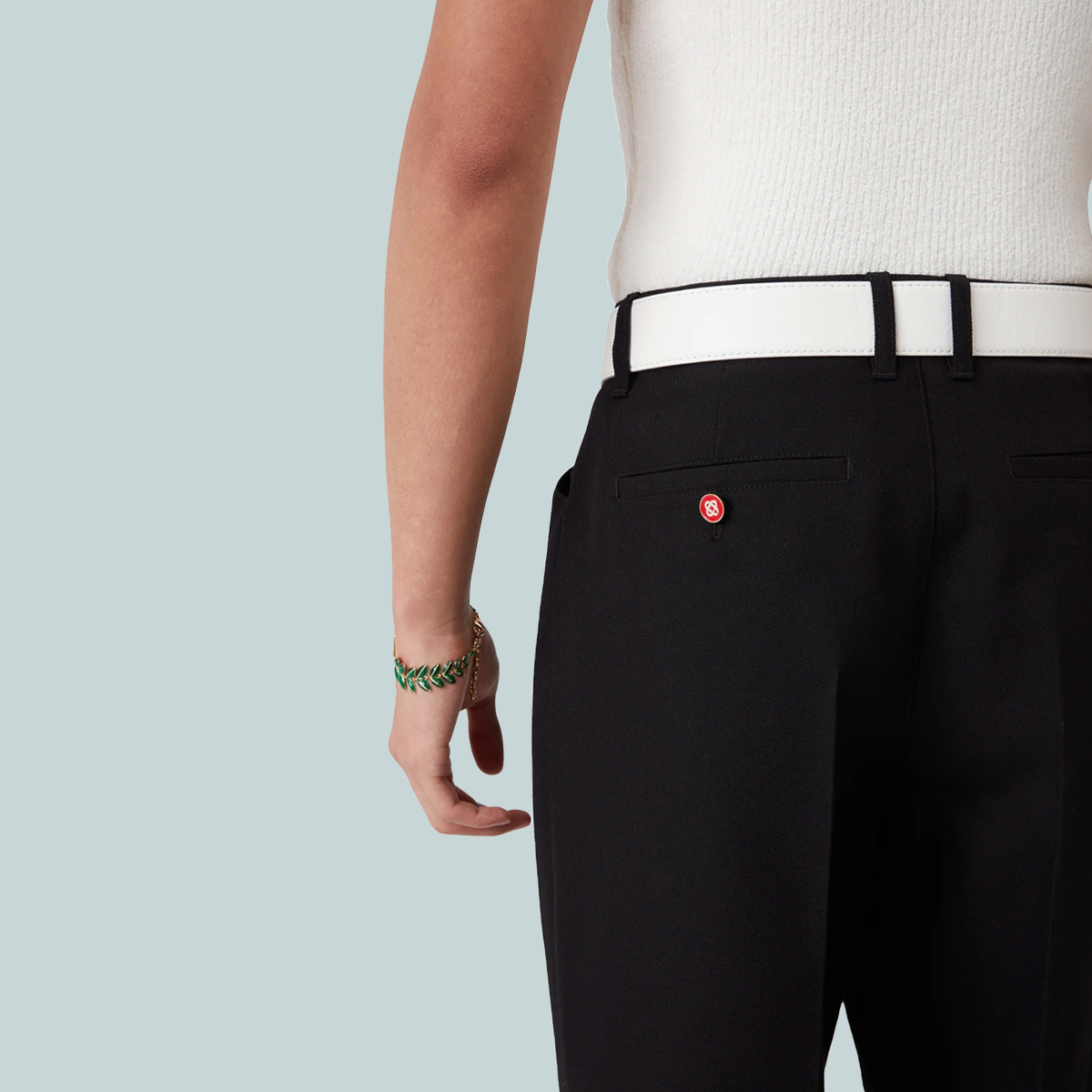 The Chicano pleated chino trousers are a straight-leg design crafted from wool fabric and feature a cotton blend lining. Completed with slanted front pockets, belt loops, zip closure, and welt back pockets.