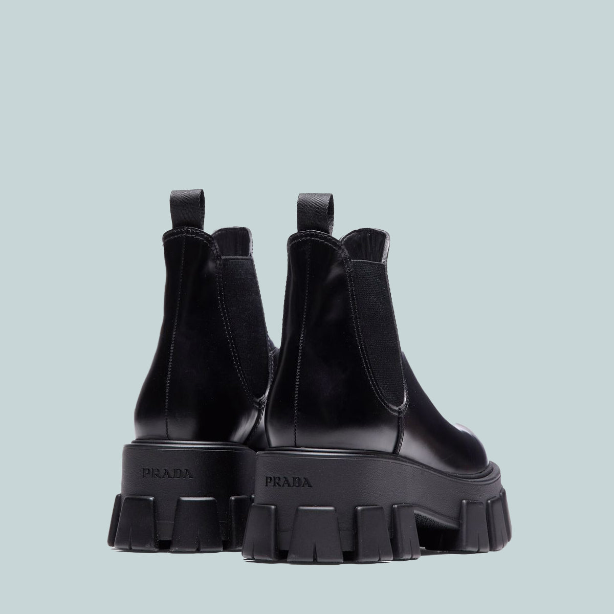 Unique and bold, this shoe emphasizes the concept of duality, which is essential in the aesthetics of the brand. The modernist maxi sole with a unique monolithic design creates a dialog with the brushed leather upper of these boots, featuring a rigorous look and polished finish. A hybrid yet harmonious soul characterizes the Monolith line that combines diametrically opposed images to create a timeless silhouette.