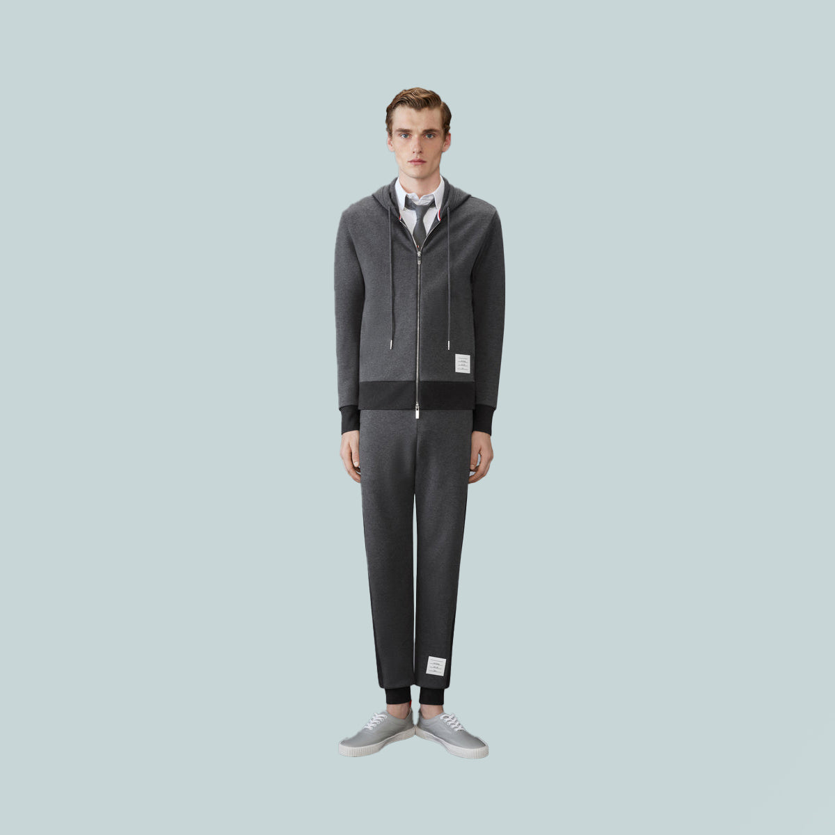 Leisurewear made artful. A signature Thom Browne emblem defines this piece — our iconic name tag applique.