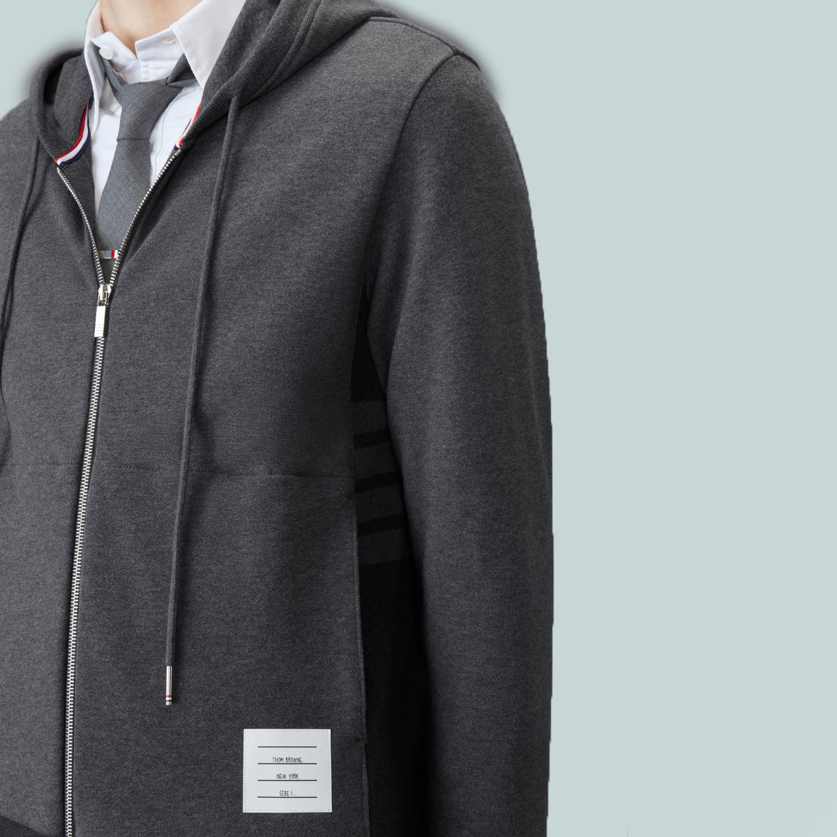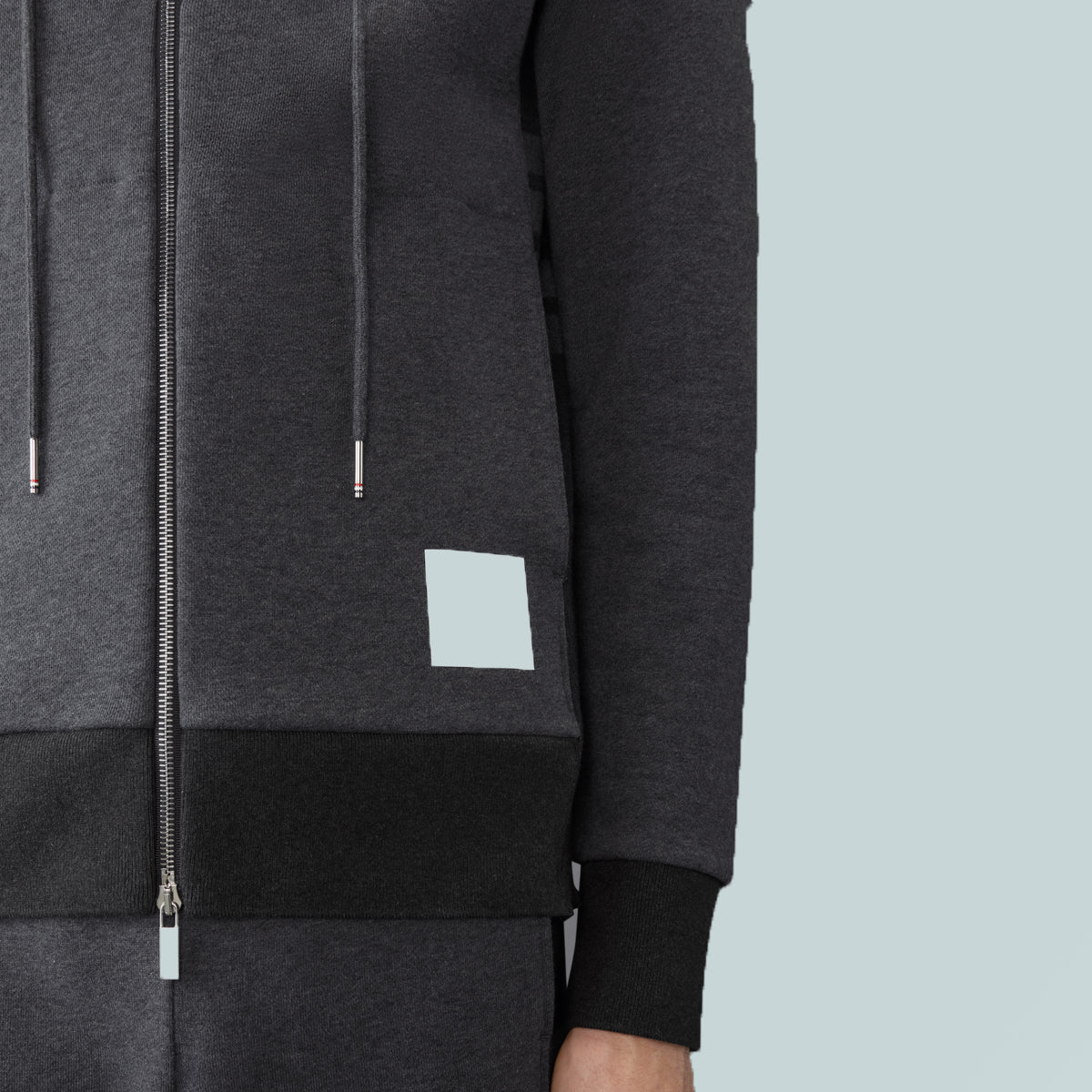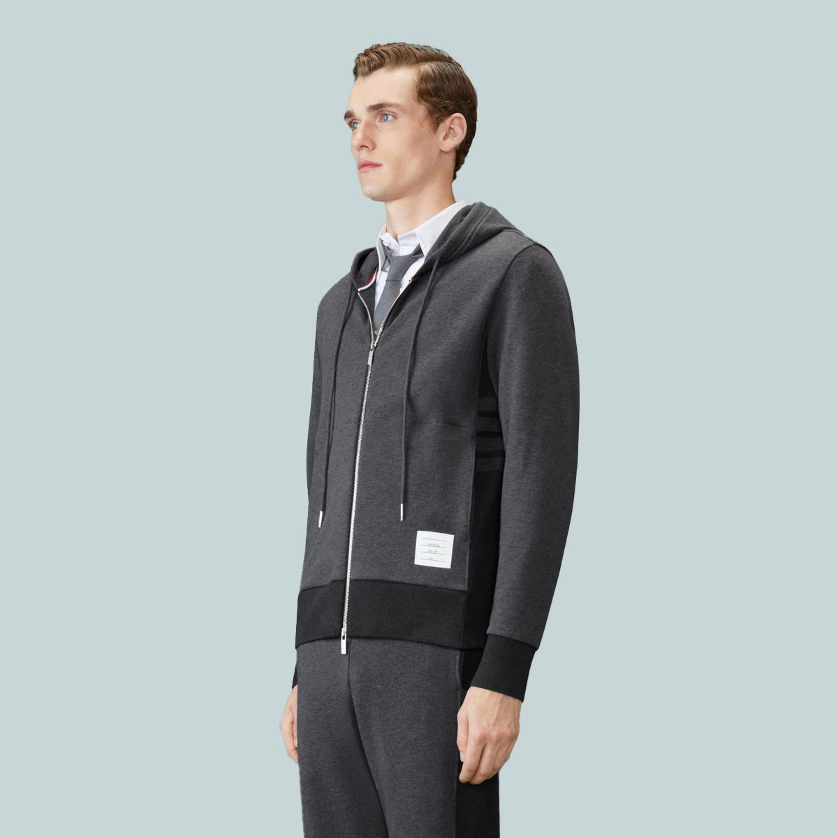 Classic 4-Bar Jersey Zip Up Hoodie Colour Blocked Grey