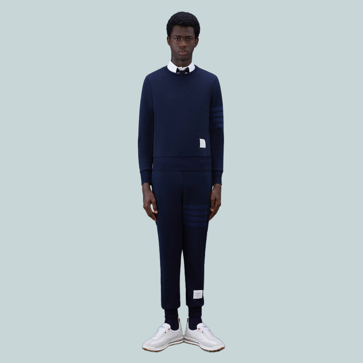 Leisurewear made artful. Our Classic Loopback 4-Bar Relaxed Sweatshirt is adorned with our iconic 4-Bar stripe detailing emulated after varsity stripes.