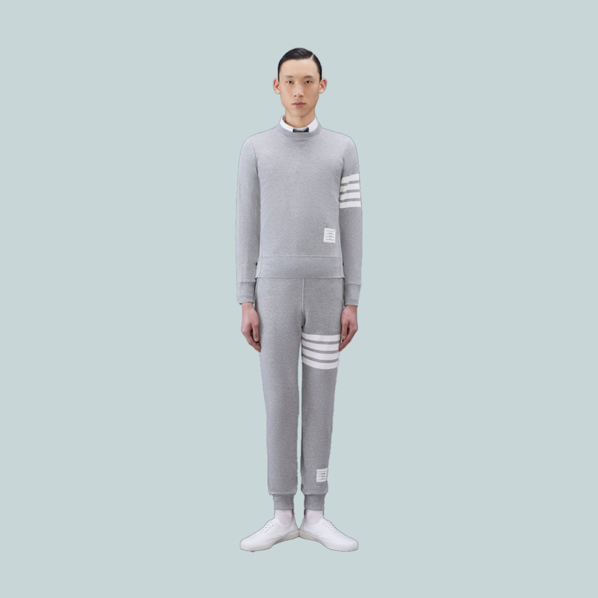 Leisurewear made artful. Our Classic Loopback 4-Bar Sweatshirt is adorned with our iconic 4-Bar stripe detailing emulated after varsity stripes.