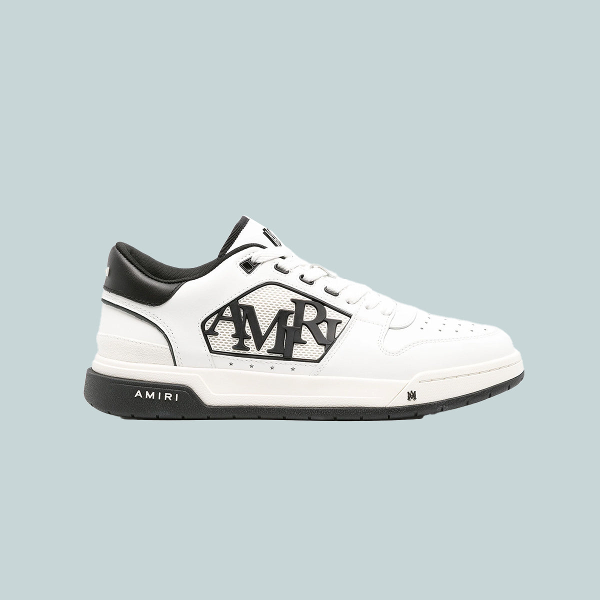 The classic low updates the timeless tennis sneaker through refinements in form and decisive house iconography. central panels of molded rubber mesh frame the amiri staggered logo while signature star perforations adorn the leather upper. finished with a two-tone rubber sole and dimensional rubber logo at back, the classic low is a new house icon steeped in time-honored sportswear aesthetics.