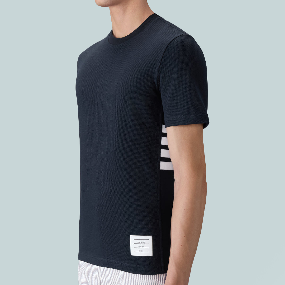 A silhouette that has stood the test of time, our Classic Pique 4-Bar Tee is adorned with signature Thom Browne emblems throughout, and tailored to perfection.