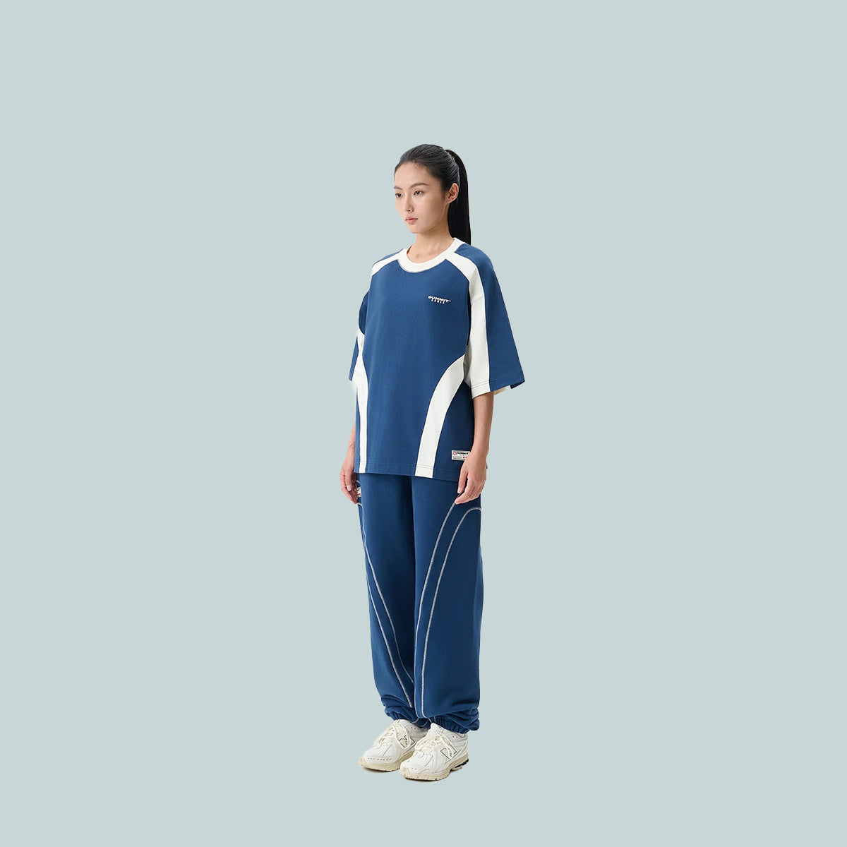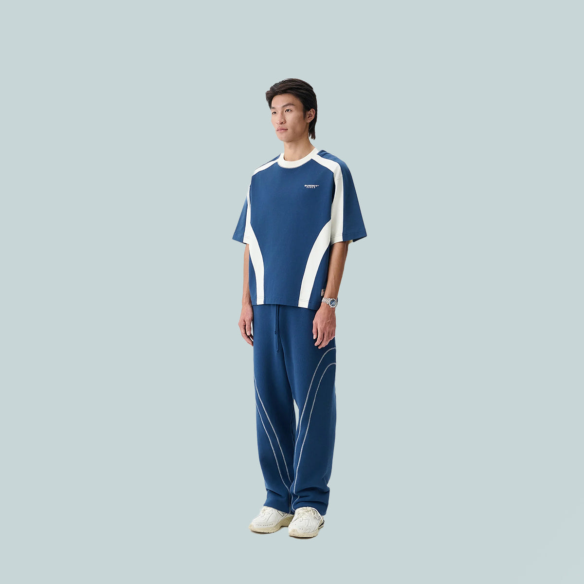 Contrast Panel Classic Tee - Maritime Blue/Cannoli Cream