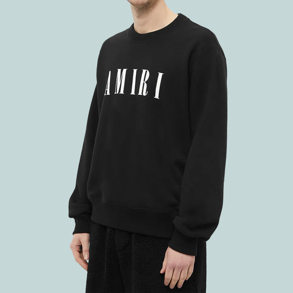 Black cotton logo-print cotton sweatshirt from AMIRI featuring logo print at the chest, crew neck, long sleeves, straight hem and ribbed edge.
