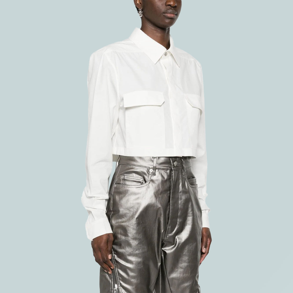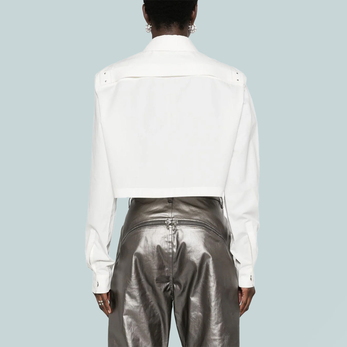Rick Owens ss24 lido cropped outershirt in milk cotton poplin