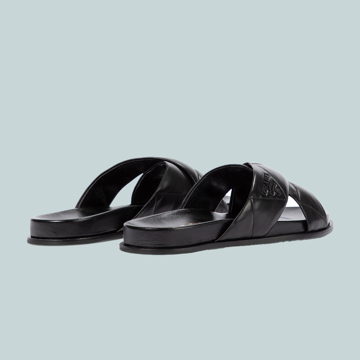 Prada's essential slider sandal is typically sophisticated. Made from polished nappa leather in label-signature black, this pair has quilted toe straps, padded insoles, and embossed logo lettering on the vamps. Equally comfortable and fashionable, they deserve a place in your warm-weather wardrobe.