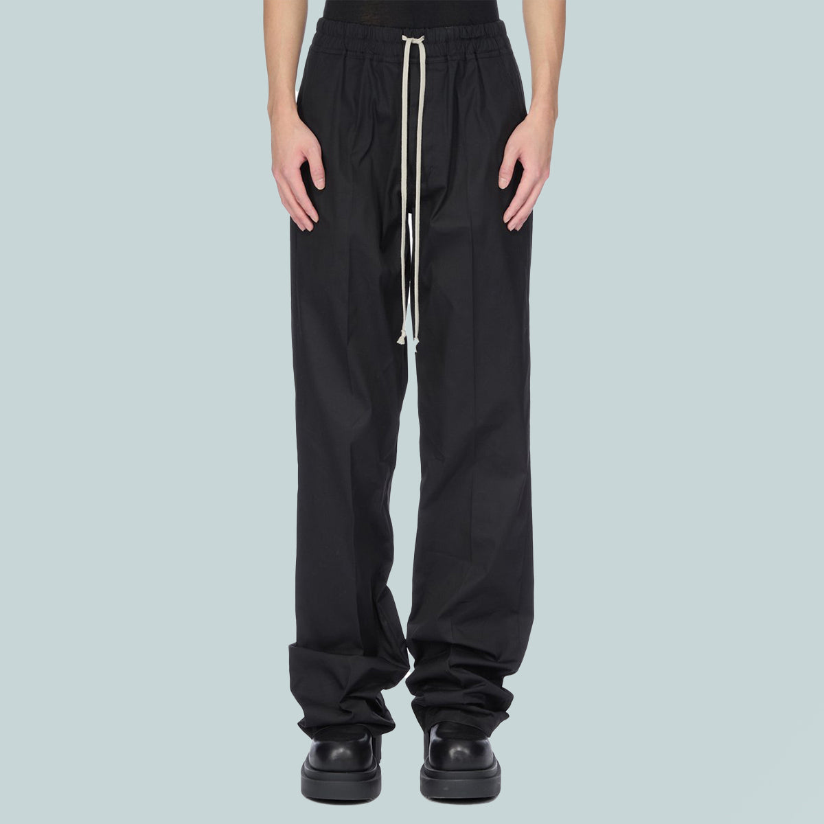Rick Owens ss26 temple dietrich drawstring in black heavy cotton poplin