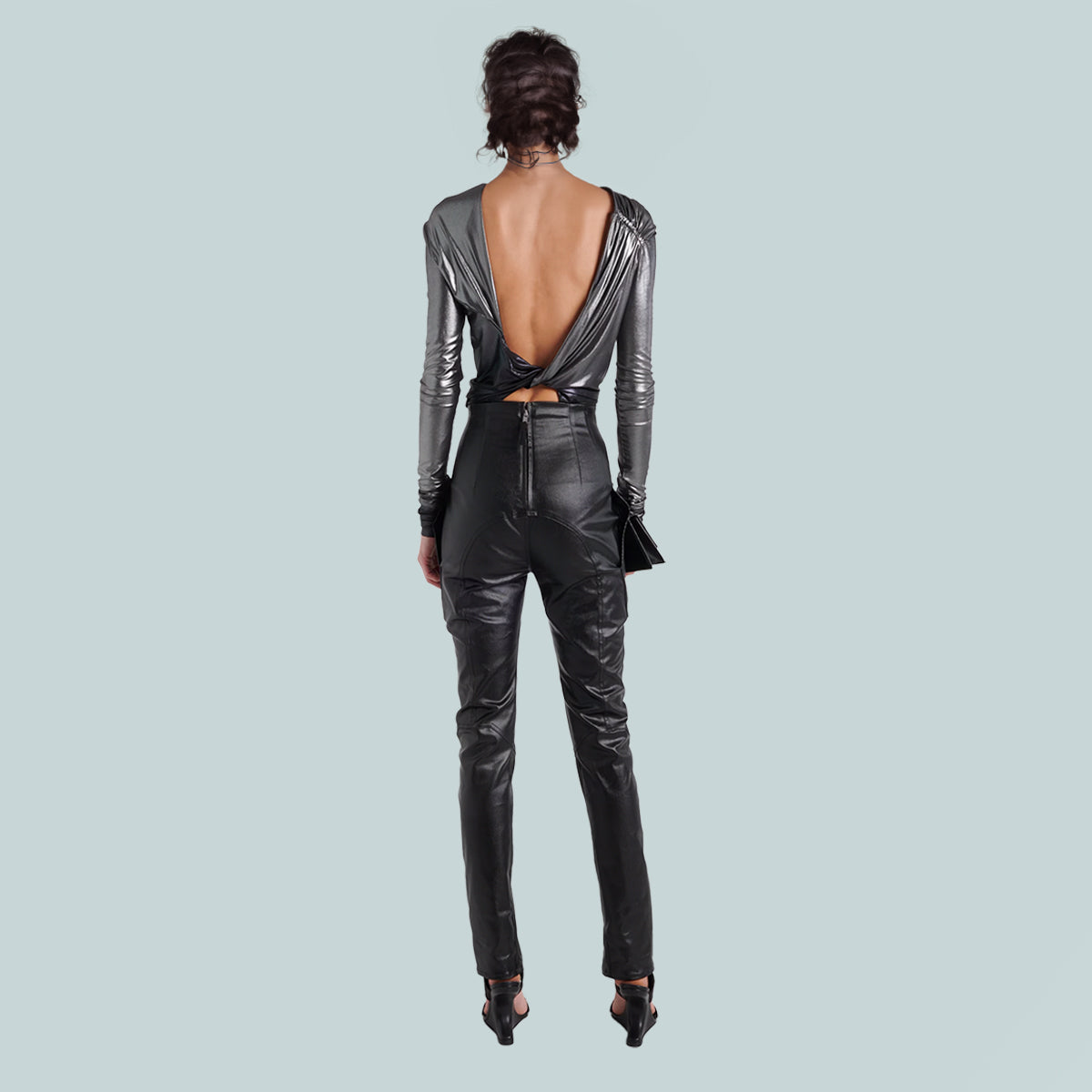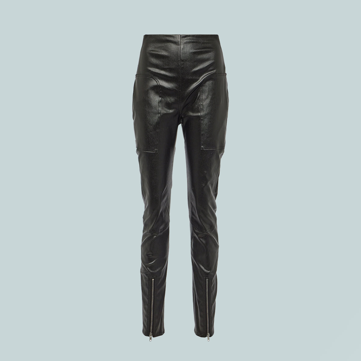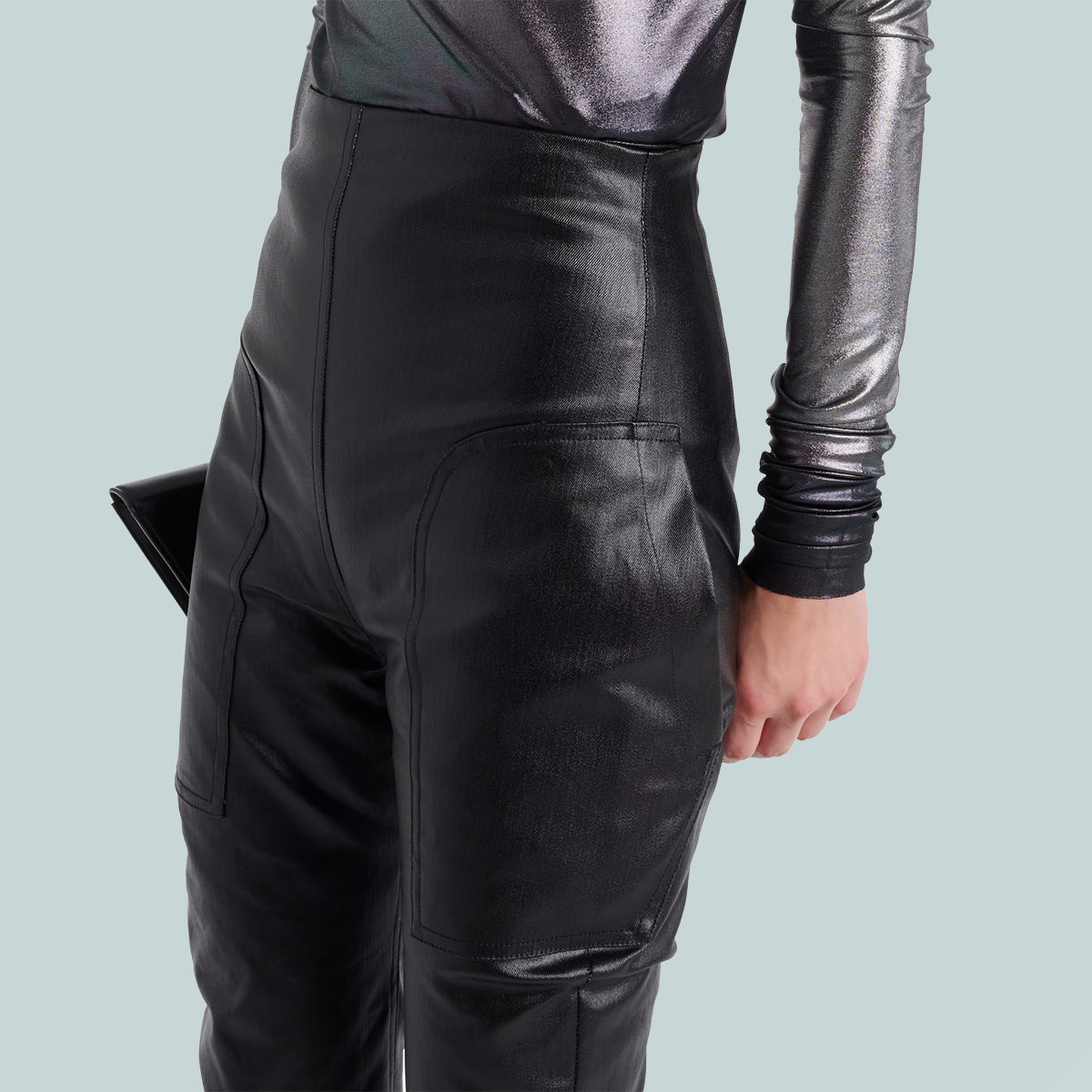 Rick Owens SS24 lido dirt waist leggings in black coated stretch denim