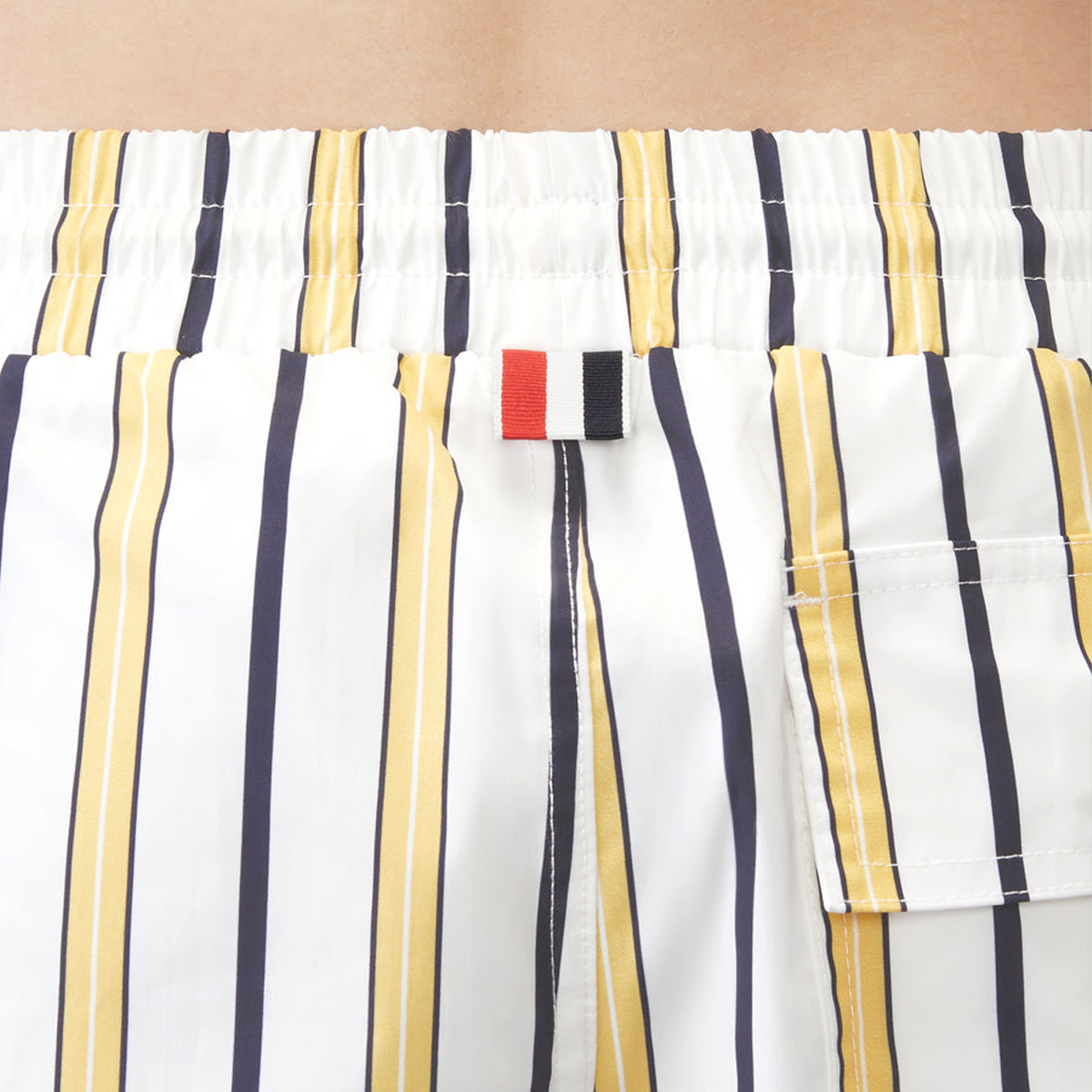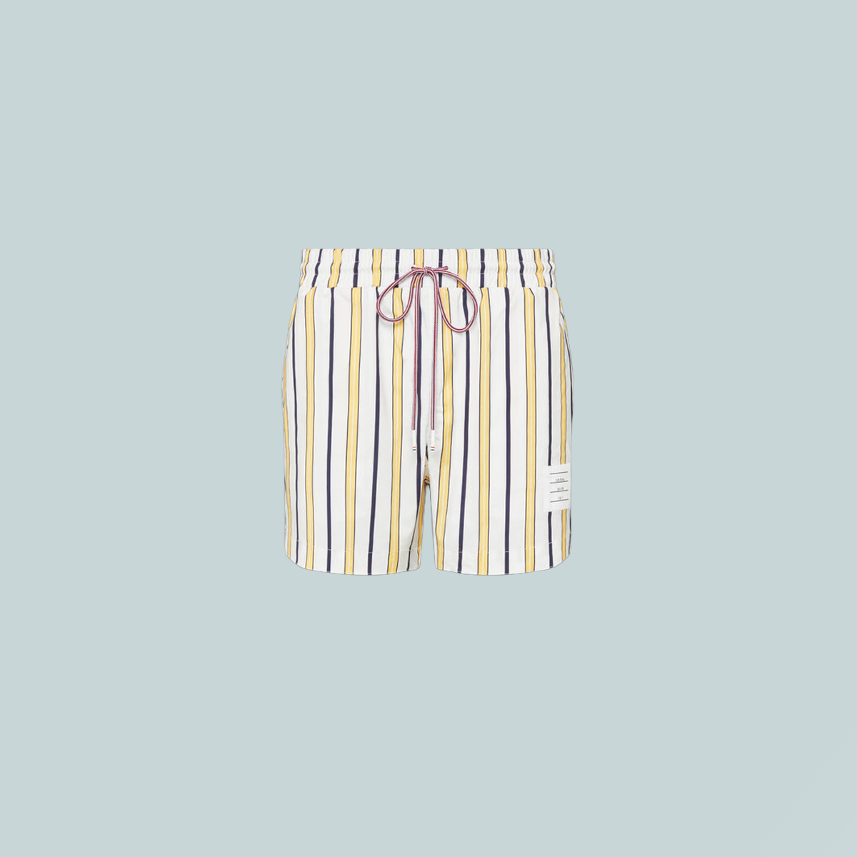 These timeless swim shorts in preppy repp stripes evoke the charm of American country life and the simple joys of summer— swimming and good company.