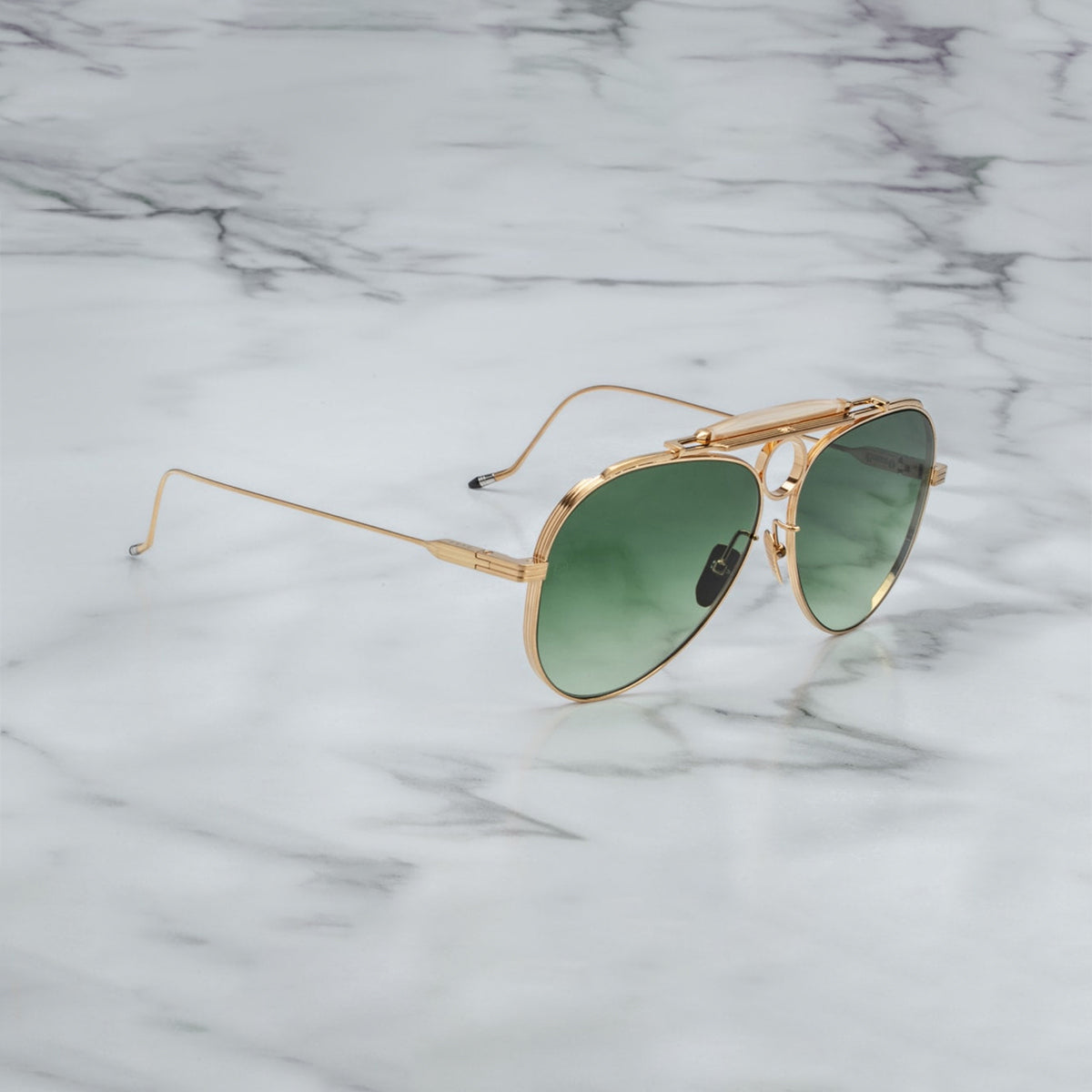 A special iteration of JMM's iconic shooter-style glasses that feature a signature tailfin temple-tip with a custom black epoxy detail.