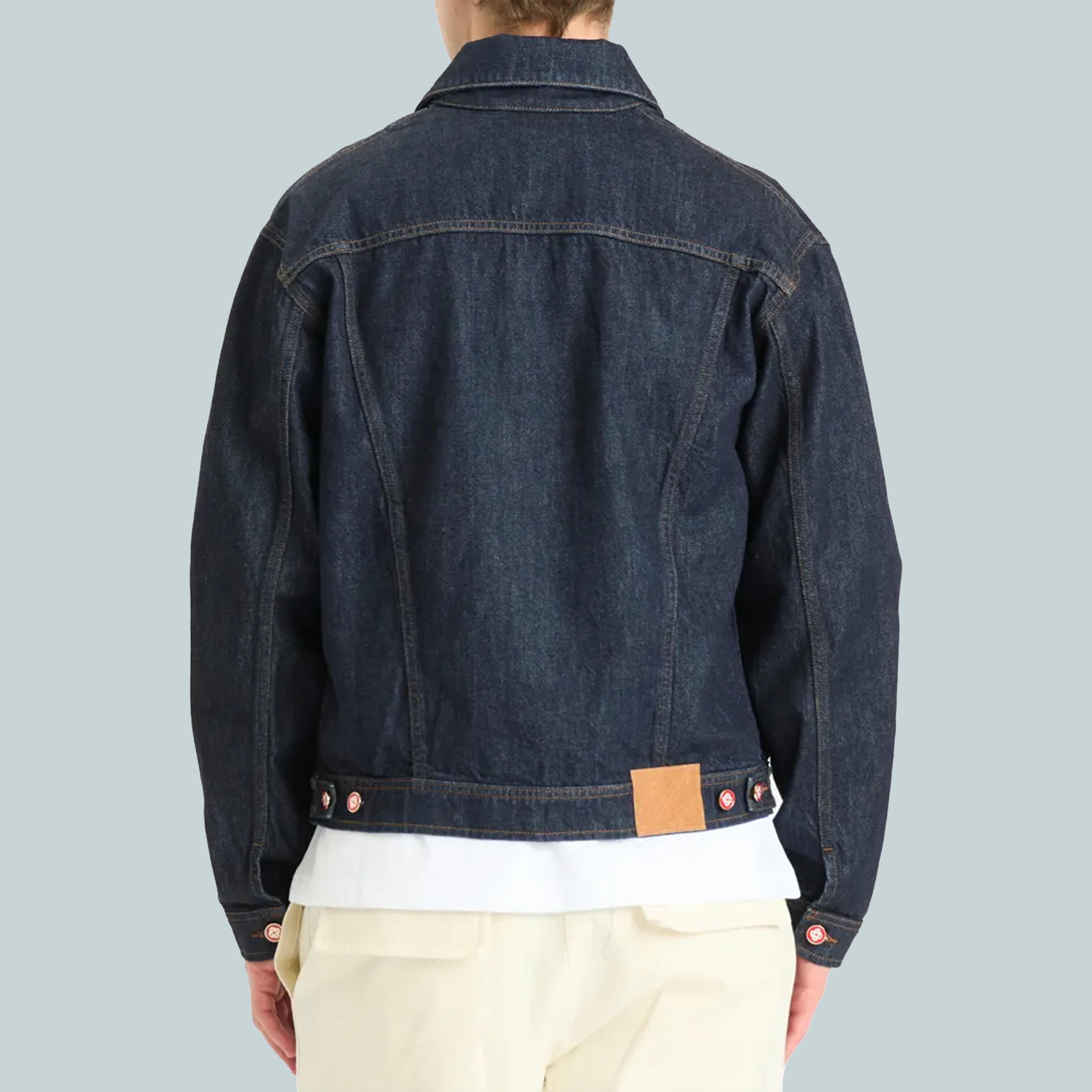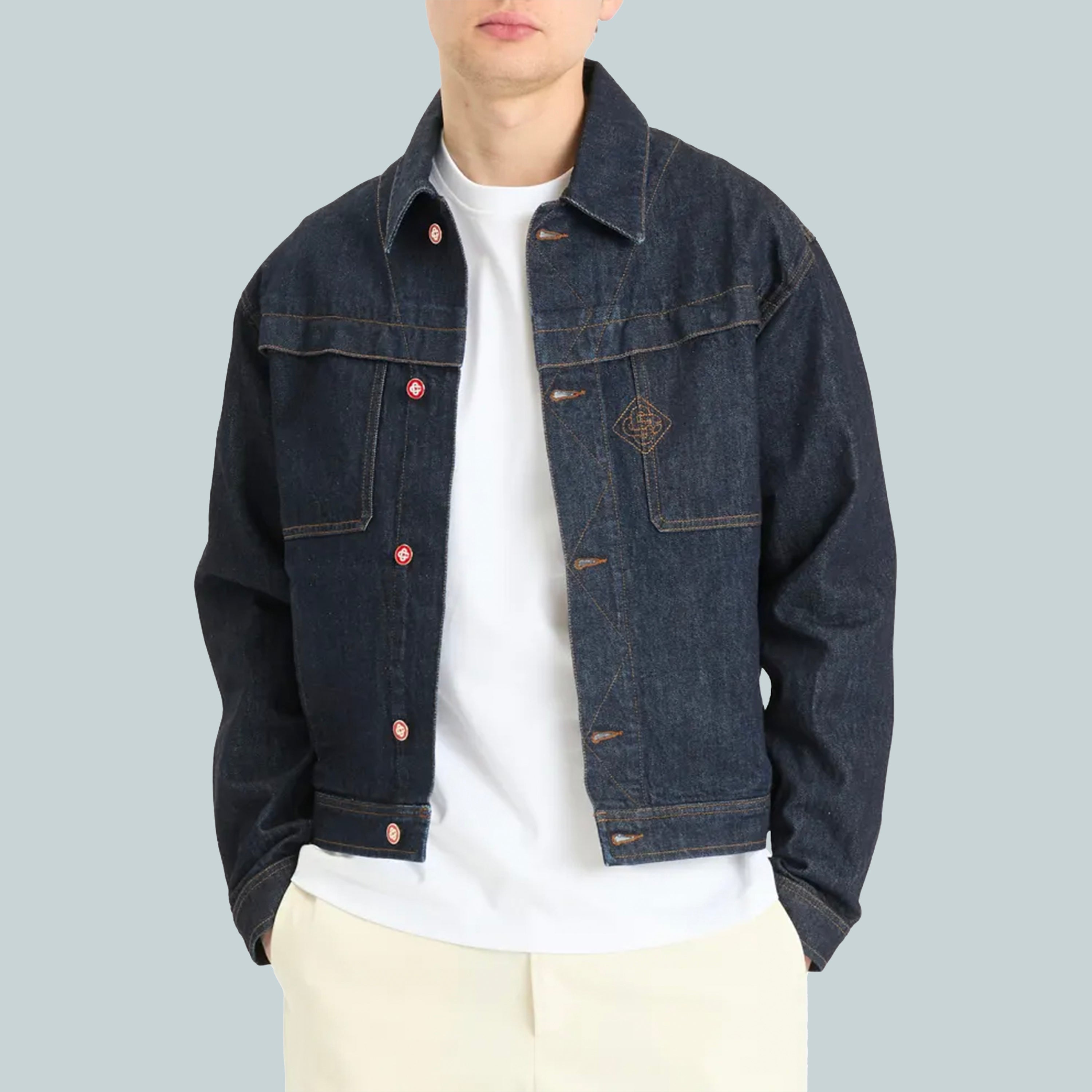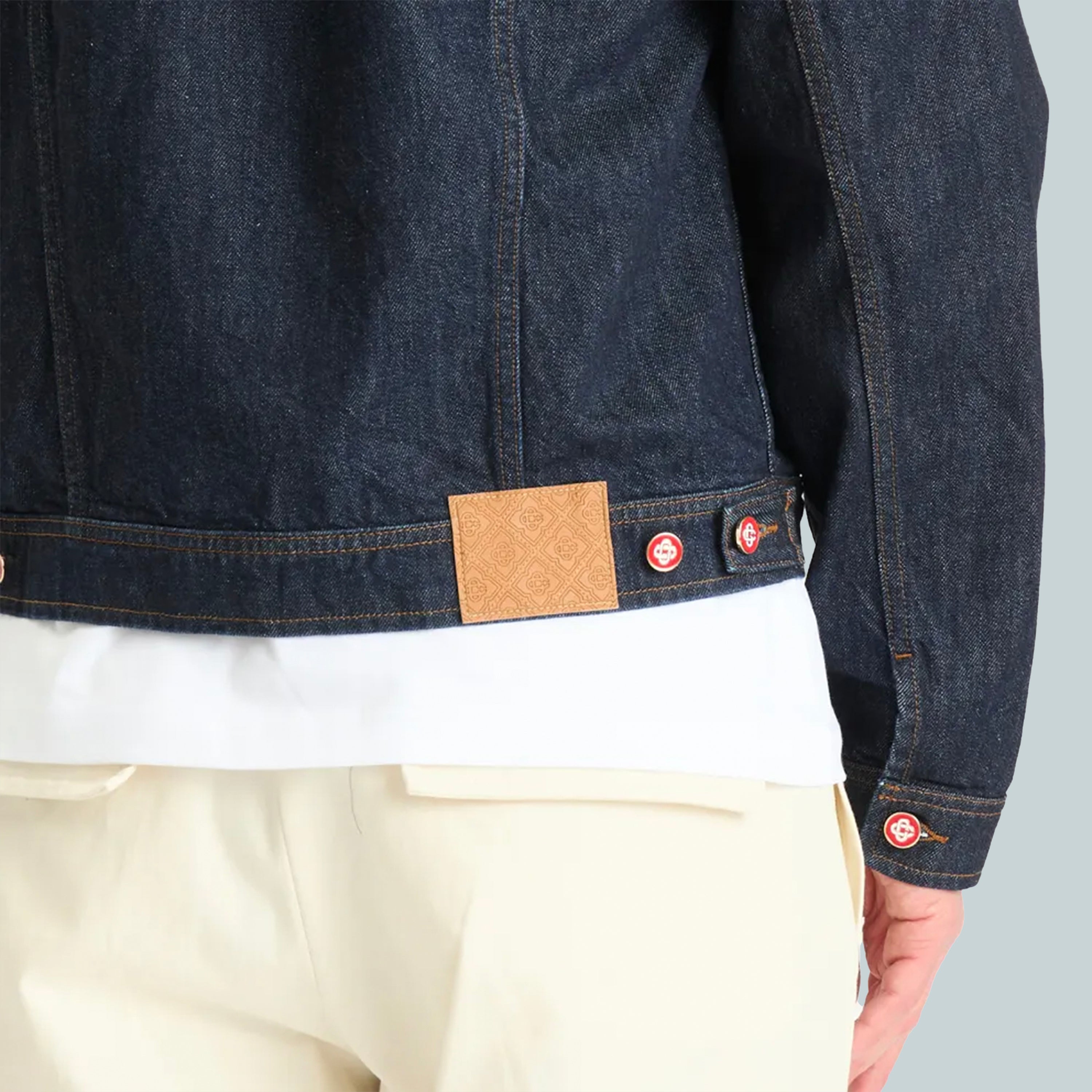 The monogram long-sleeve denim jacket is a long-sleeve design crafted from cotton denim fabric. Completed with breast pockets, a point collar, button closure, branded gold-plated hardware, a box pleat in the back and an embroidered CC logo.