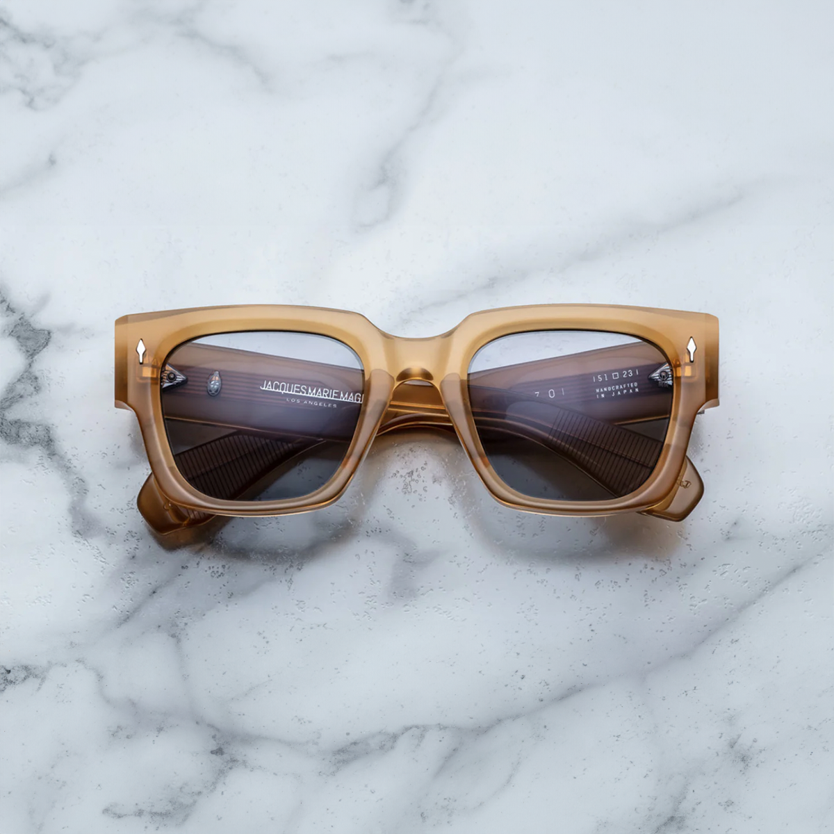 Material: Brown 10mm cured cellulose acetate frame with custom double laminated acetate temples