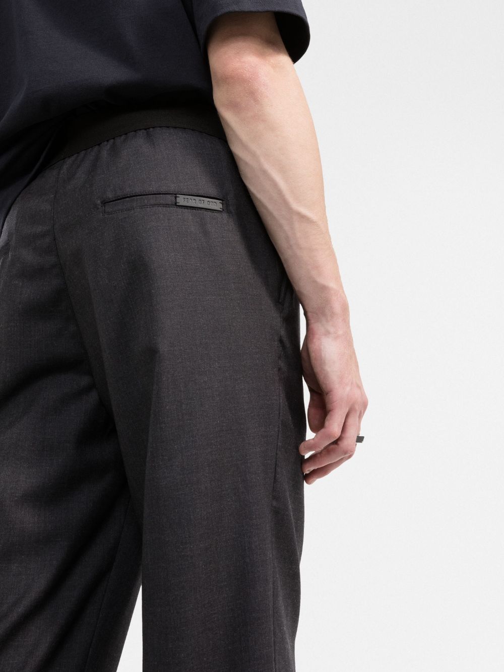 Showcasing Fear of God's minimalist aesthetic, these grey straight-leg trousers are simply detailed with a black branded elasticated waistband. Two side slit pockets and two rear welt pockets.