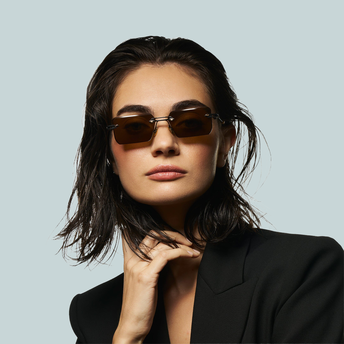 The two-tone Modular Monoblock Titanium nose bridge system includes adjustable arms and pads pressed with our iconic logo, with