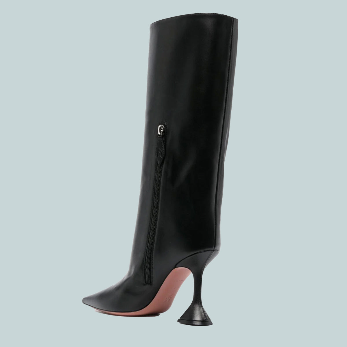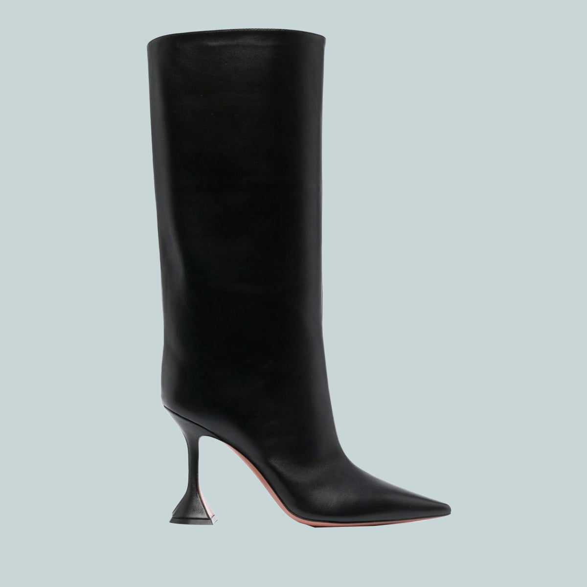 Amina Muaddi is known for offering dramatic silhouettes. This is showcased by these pointed-toe pumps, thanks to a high part-stiletto and part-flared heel.