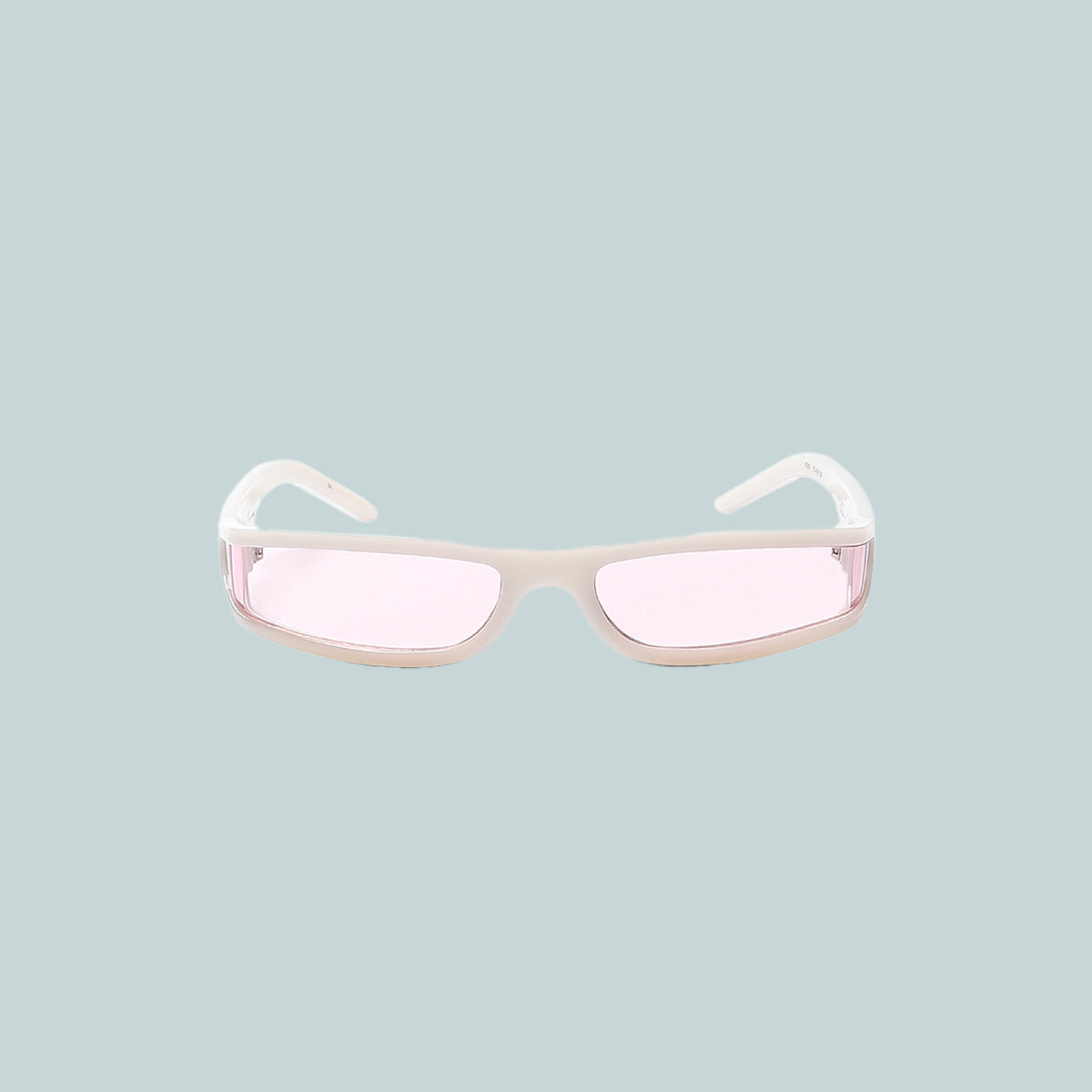 The Fog sunglasses by Rick Owens. A slim wrap-around frame with lenses that extend to fold around the temple.