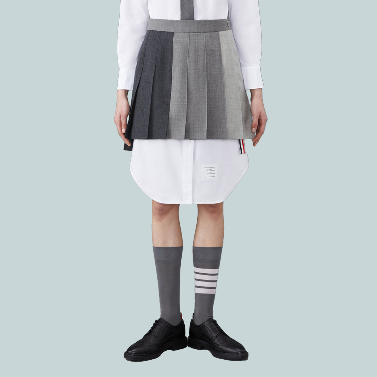 Fun Mix Wool Fresco Classic Mini Pleated Skirt Grey
