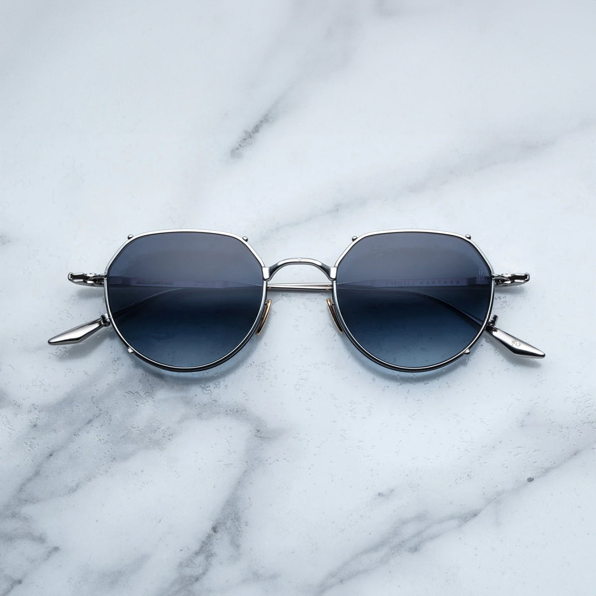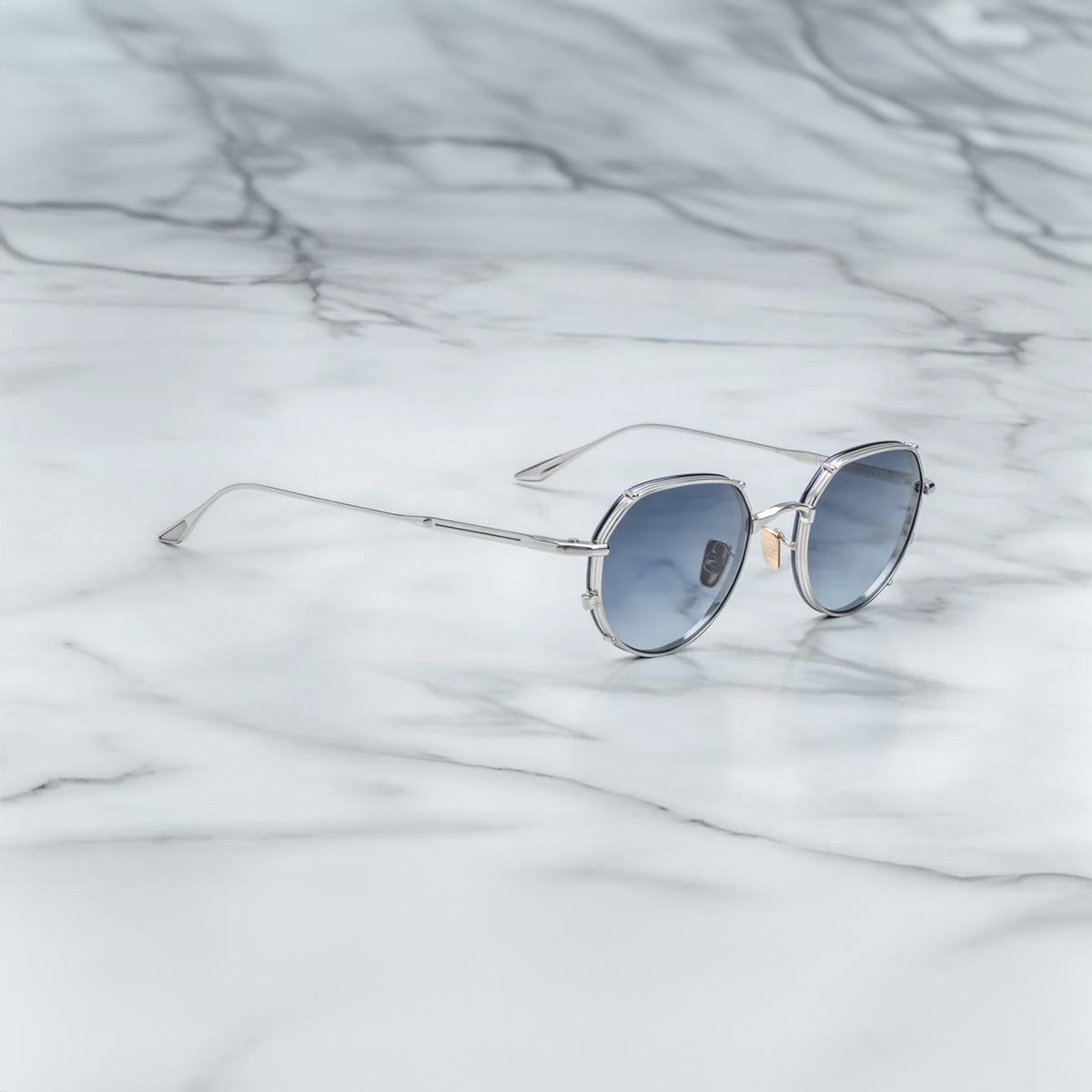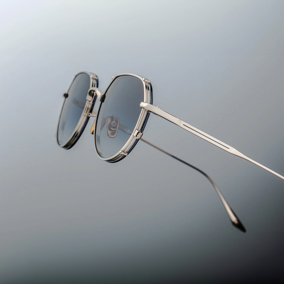 Suddenly, a spectacle worthy of seeing for yourself. The luxury of a feeling, the grandeur of divined expressions, all finely manifest in sleek and sober titanium. No sentimental turn or ostentatious parading, here neoclassical forms are fashioned anew into a performance both posh and professorial. Light-weight and luminous, these are glasses that speak the royal language.