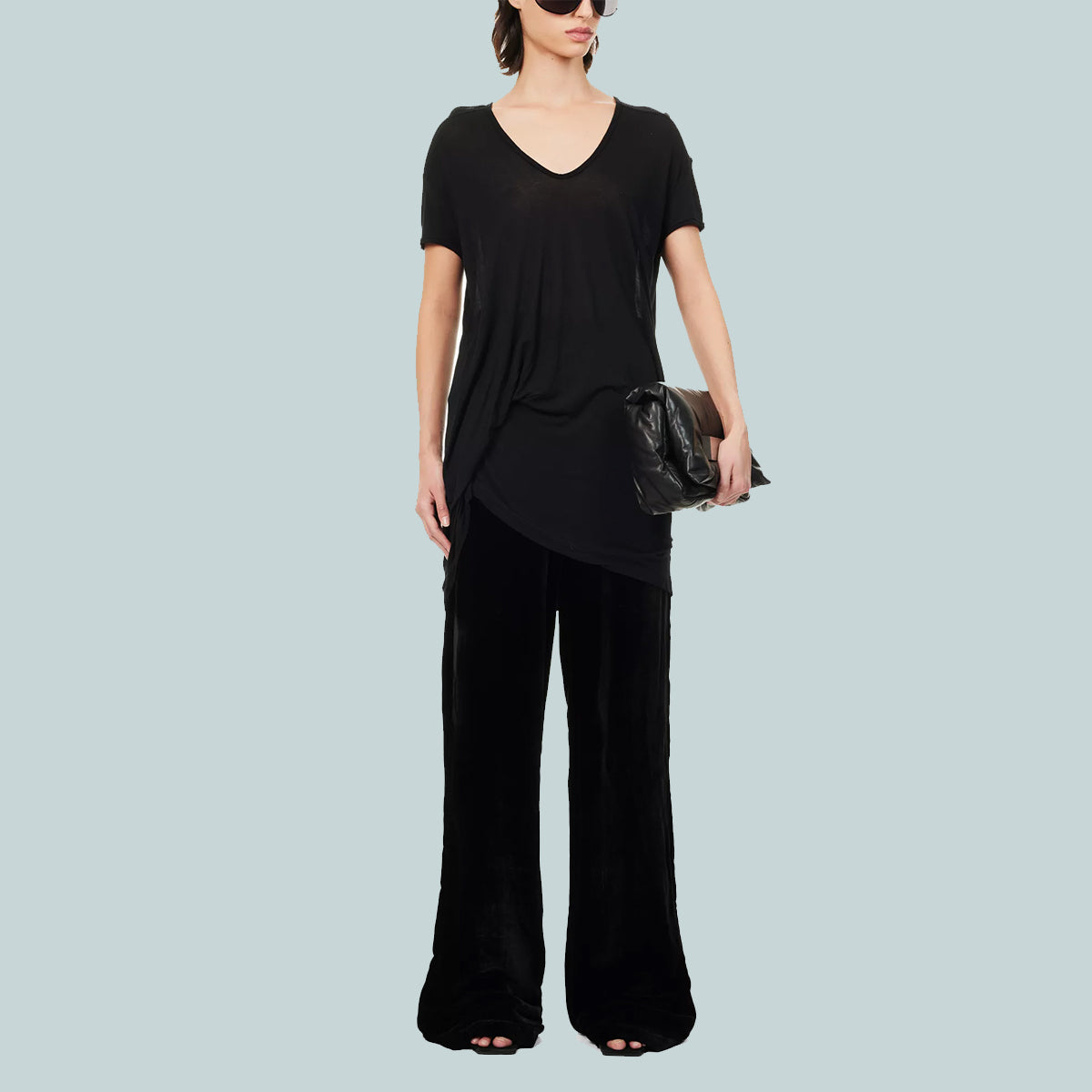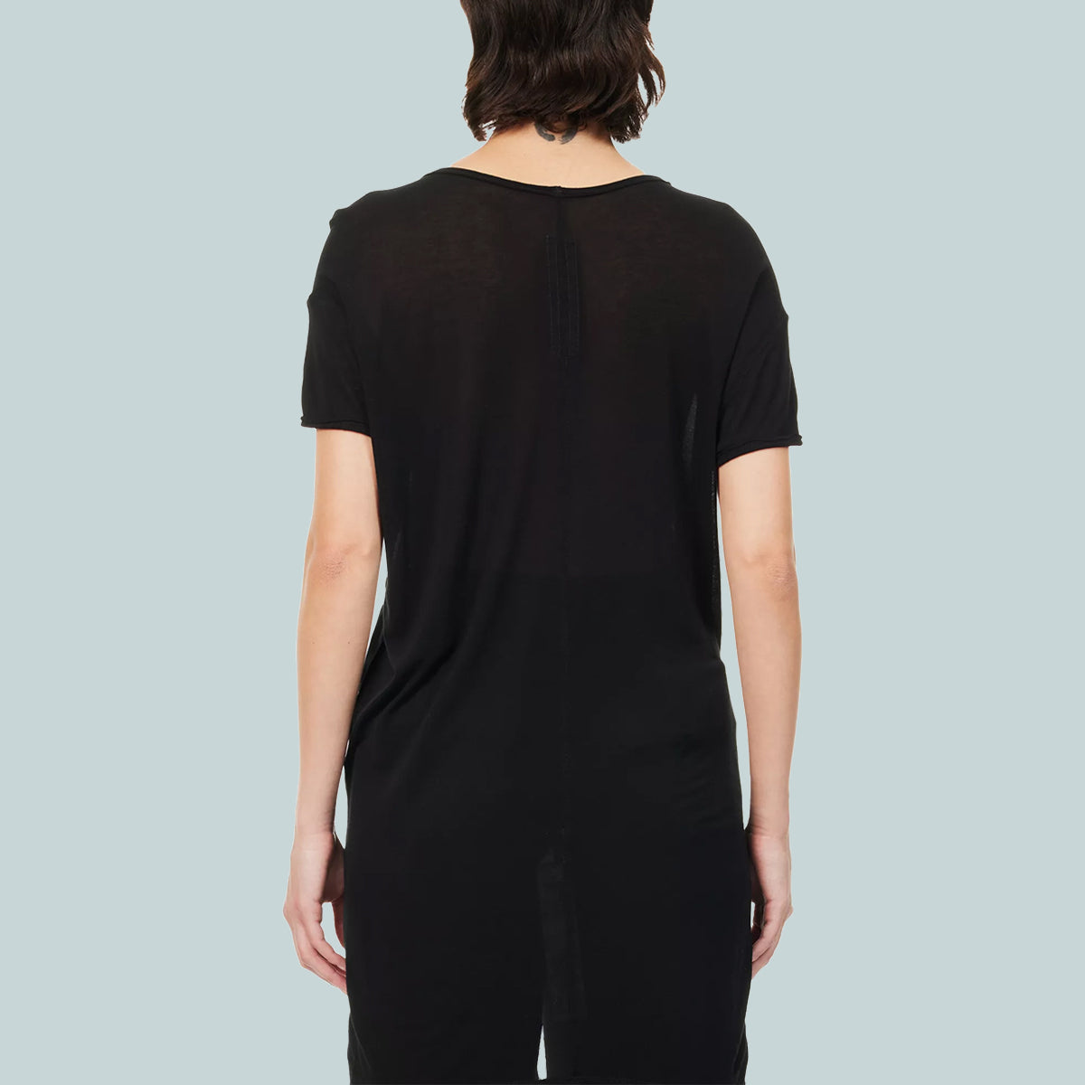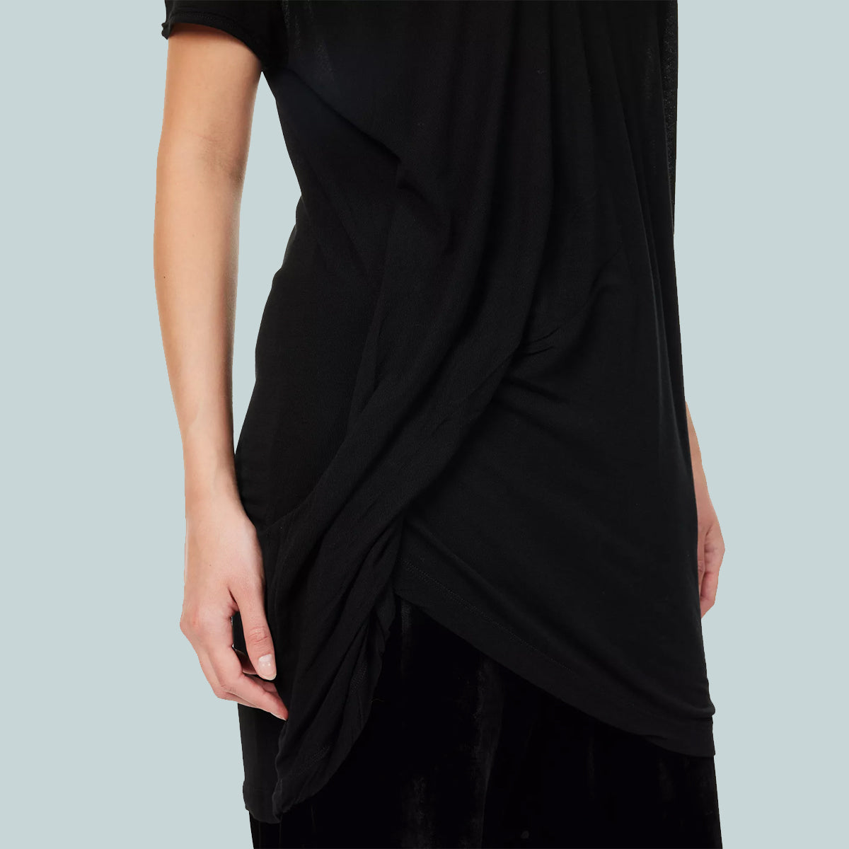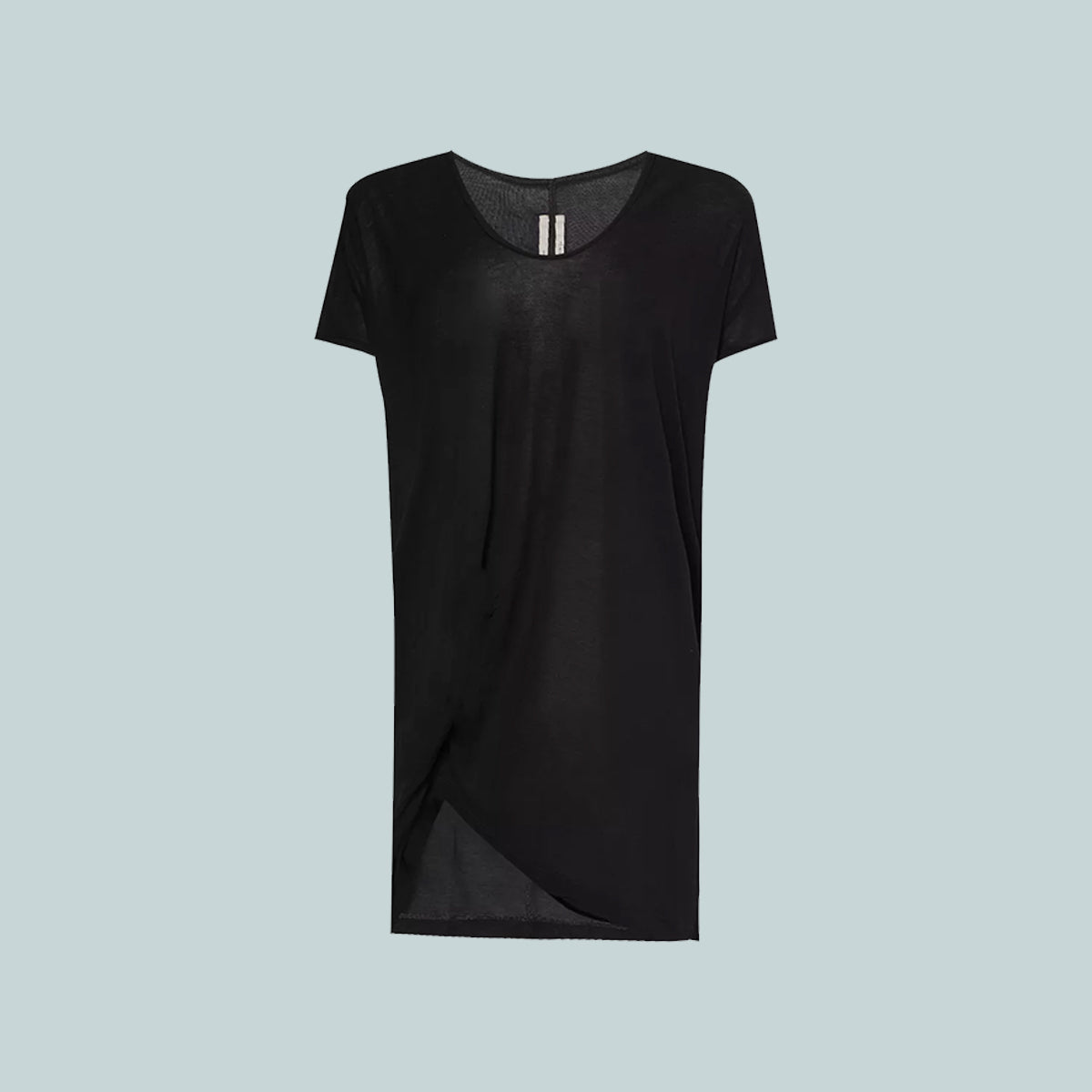 rick owens ss25 hollywood hiked t in black viscose crepe jersey