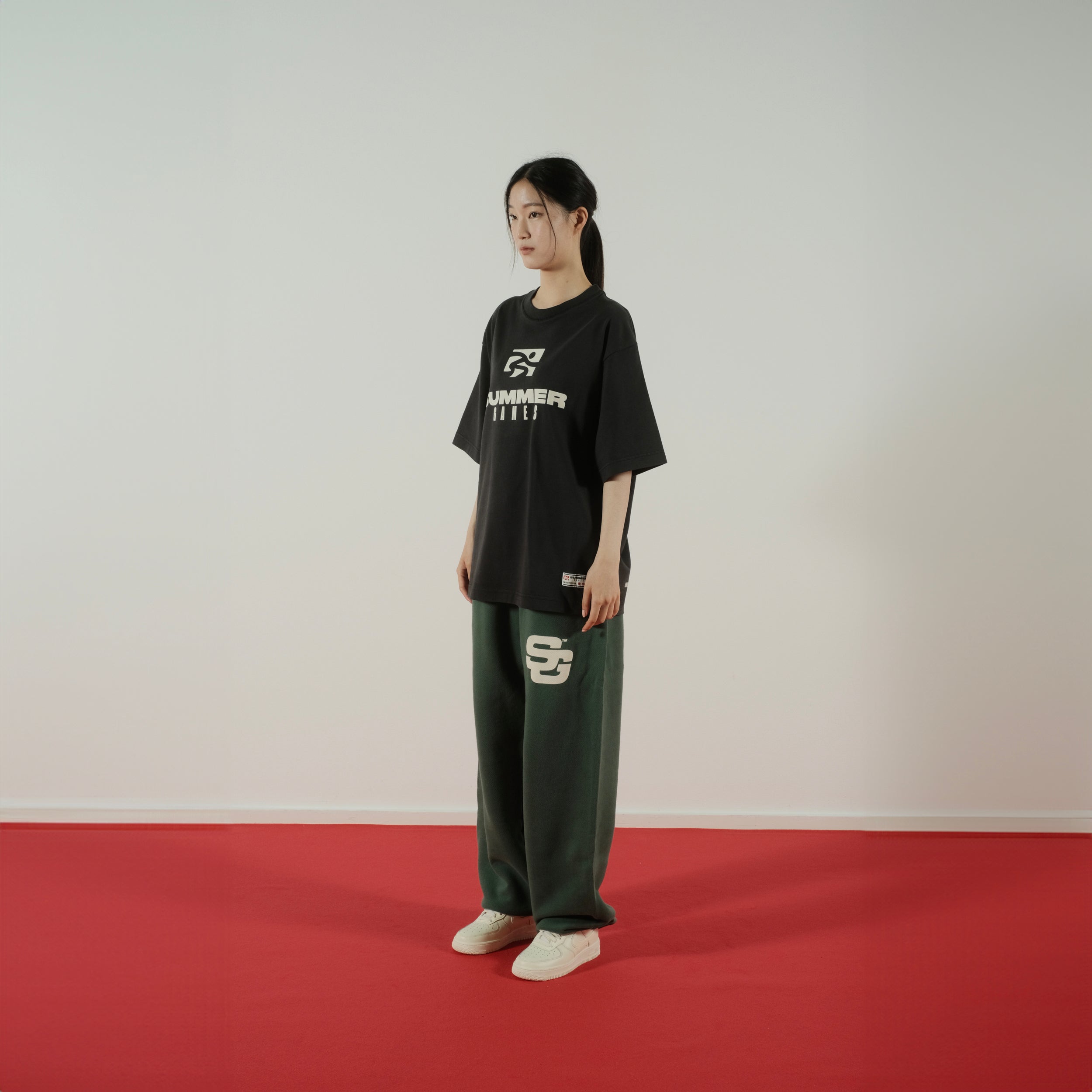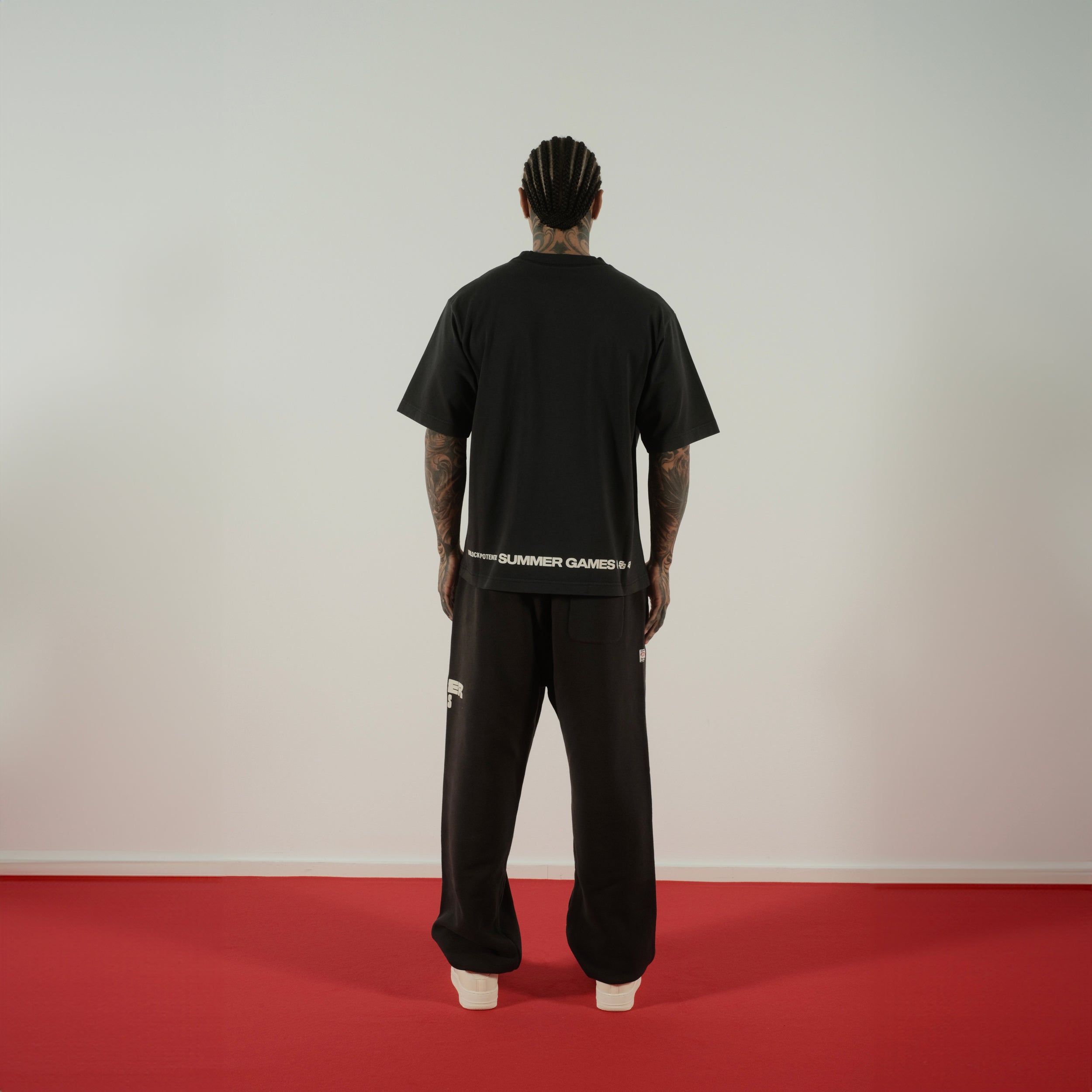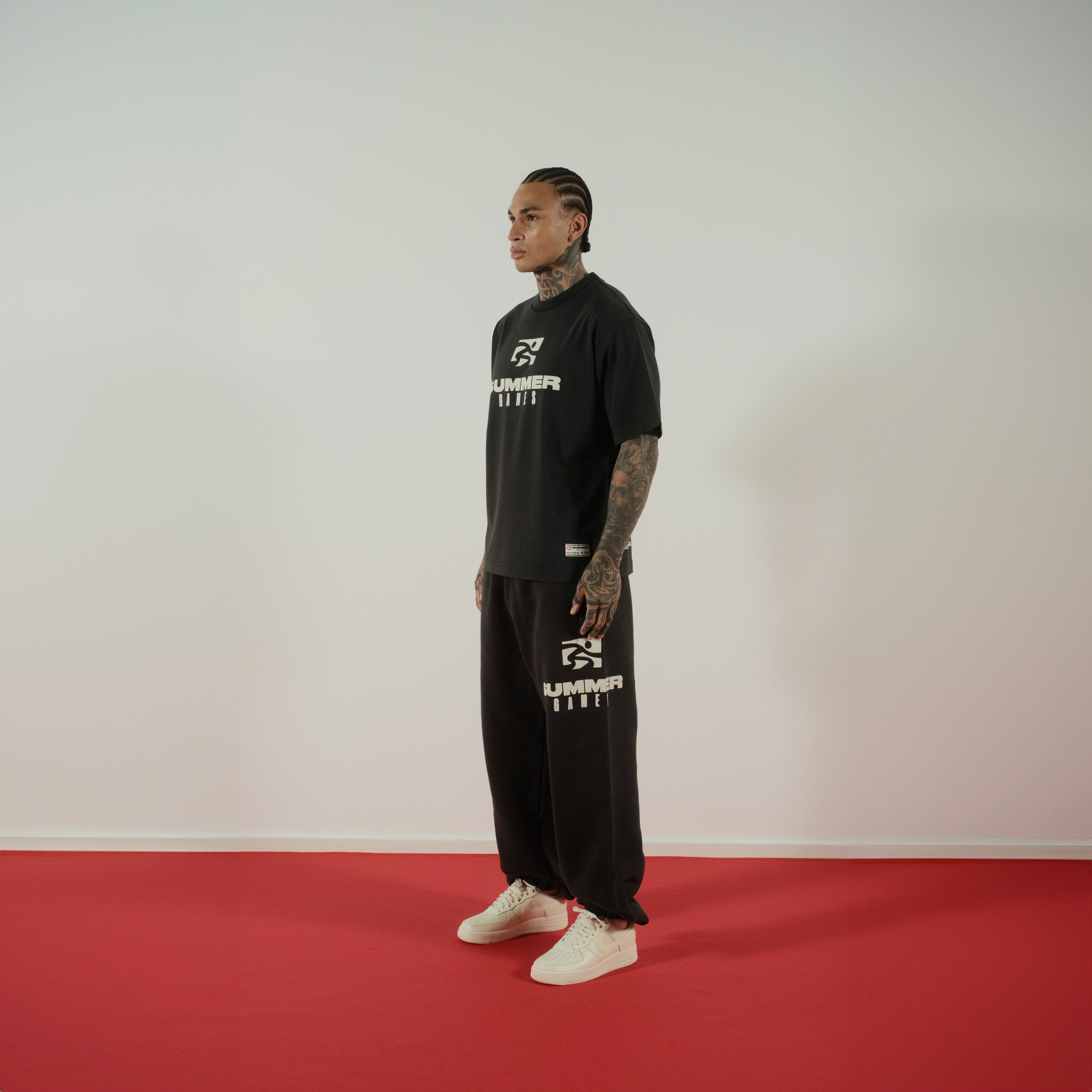 Athletic fitted tee made out of mid weight, ultra soft cotton jersey with puffed matte screen print and brand tag.