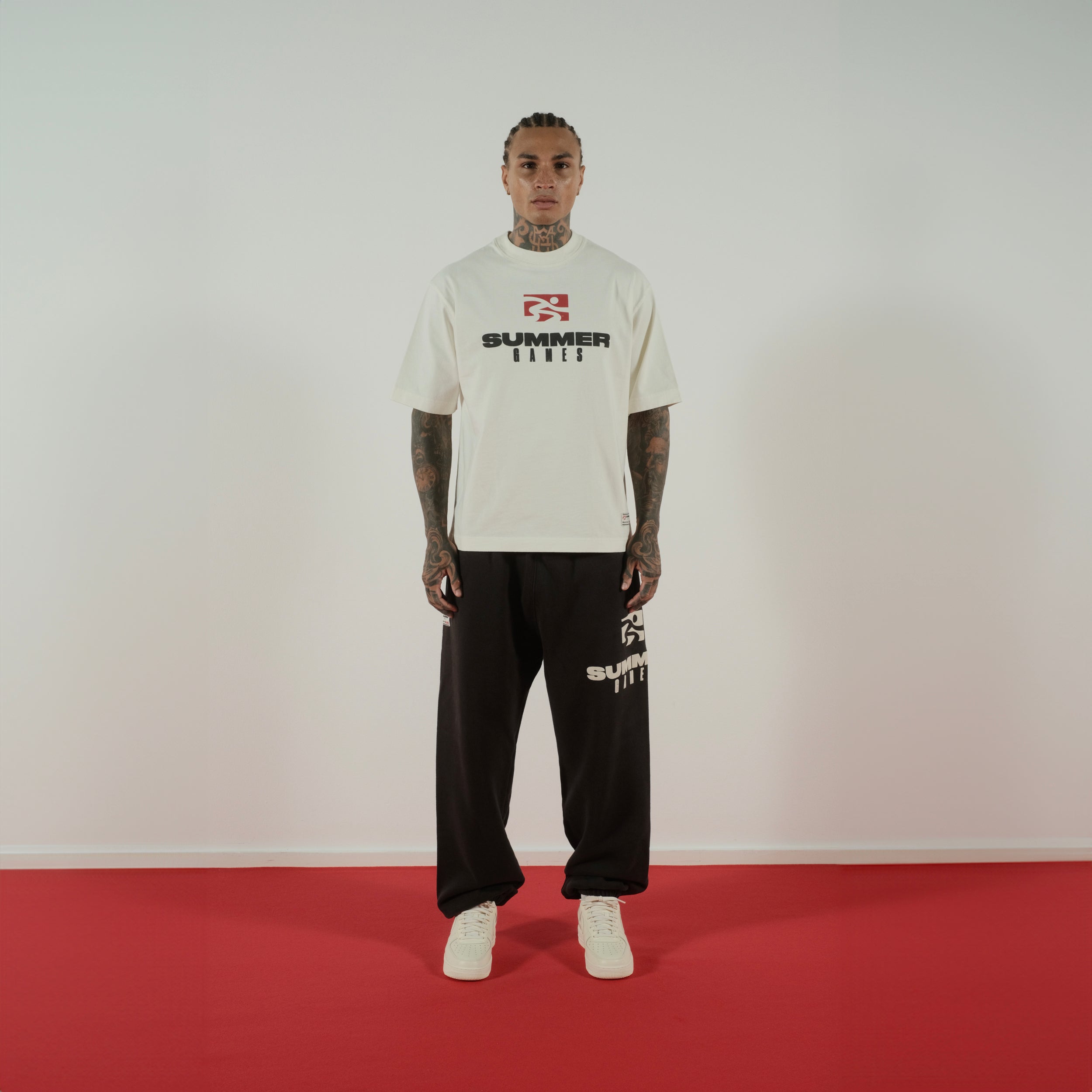 Athletic fitted tee made out of mid weight, ultra soft cotton jersey with puffed matte screen print and brand tag.
