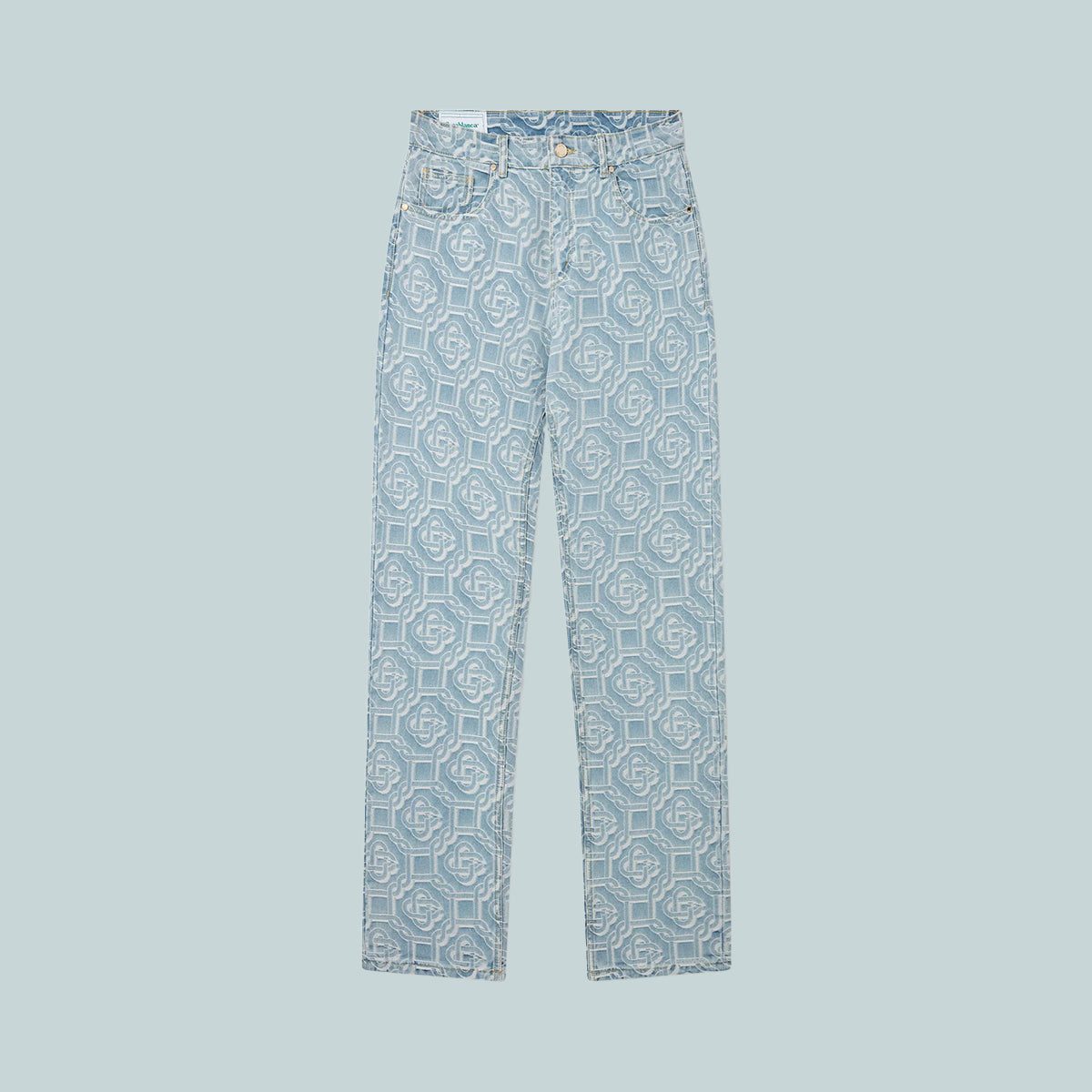 The Monogram jacquard straight-leg jeans are crafted from a cotton fabric in the house's signature denim for a classic fit. Completed with side pockets and gold hardware closure. Intended to be worn with its coordinating jacket.