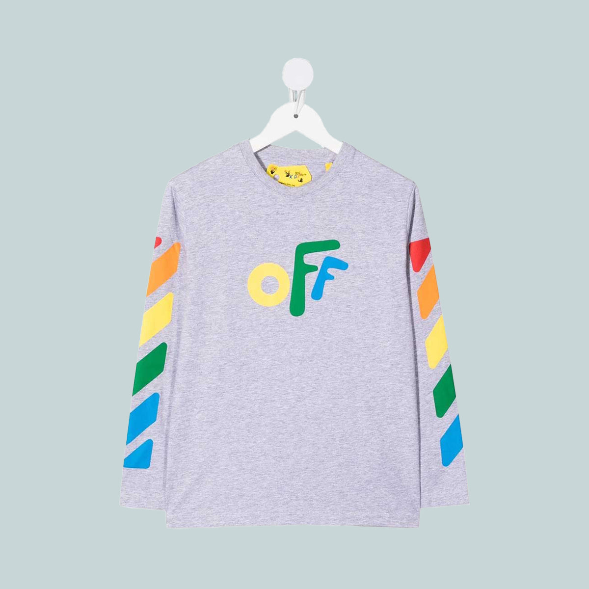 Off-White ventures into kidswear with its first-ever collection, featuring everything from tee shirts to outerwear.