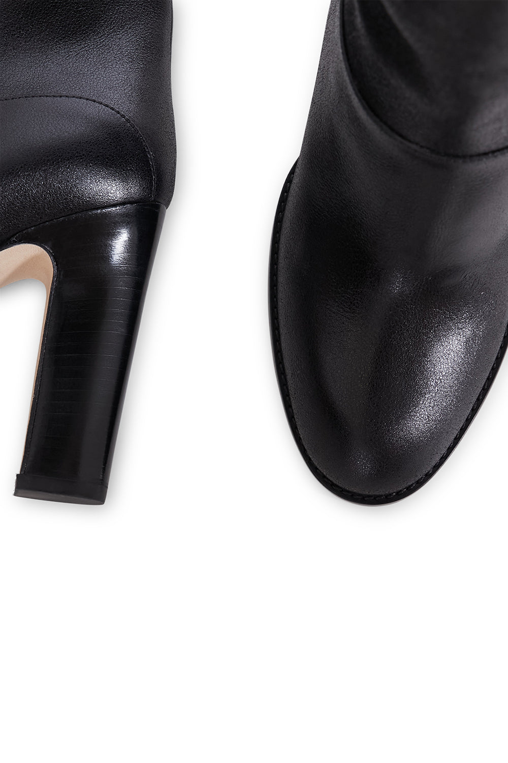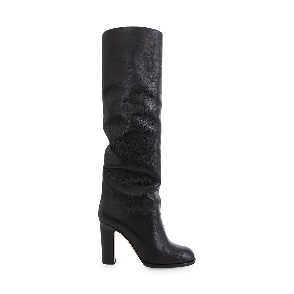 A round toe knee length boot from Paris, Texas. Designed and crafted in Italy with soft shiny calf leather to achieve a slouched look. Sturdy block heel is approximately ..... cm high.