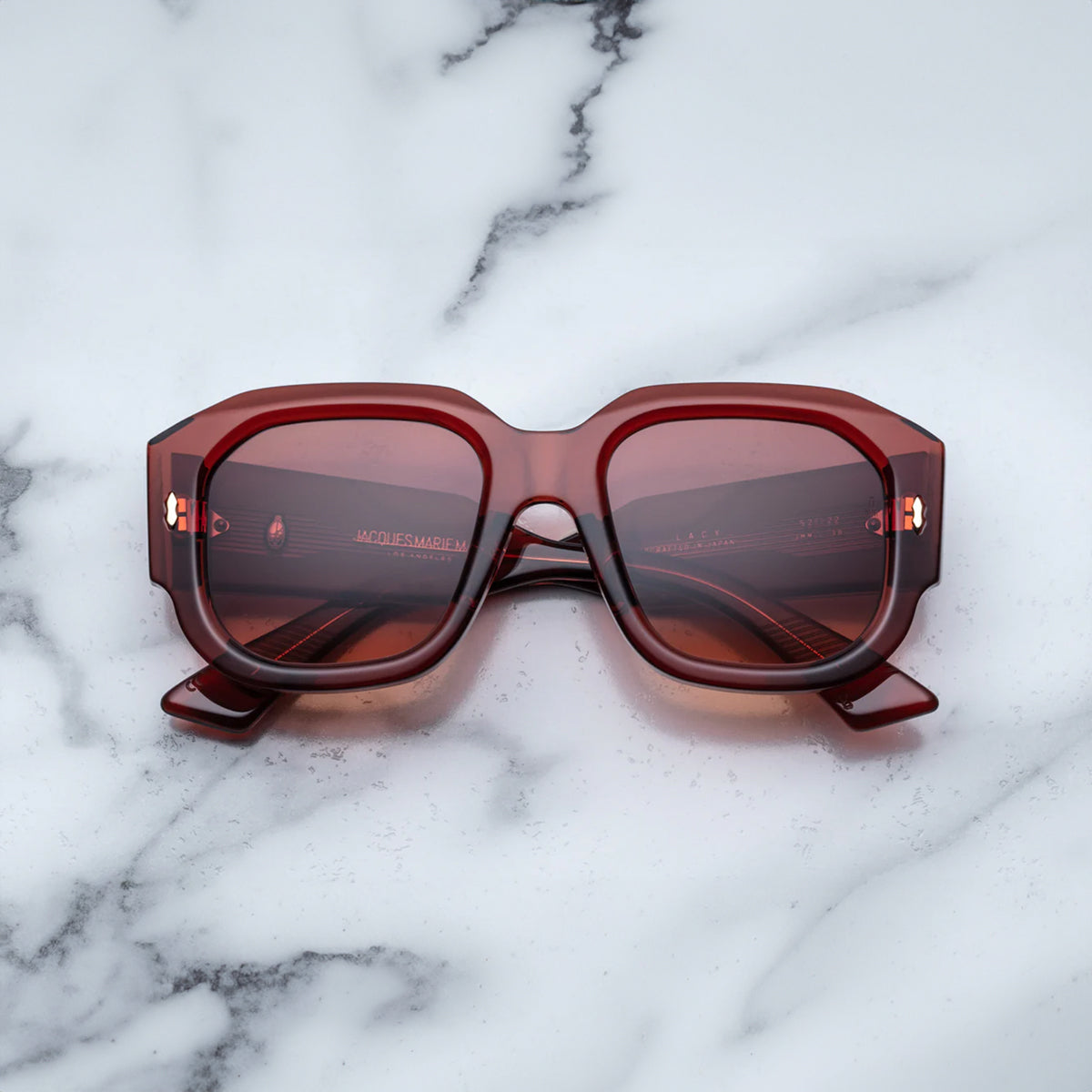 Inspired by the glamorous '70s, these Jacques Marie Mage's Lacy Beluga sunglasses feature a black oversize square acetate frame with dark gold hardware, CR39 lens with backside anti-reflective treatment and 100% UV protection.