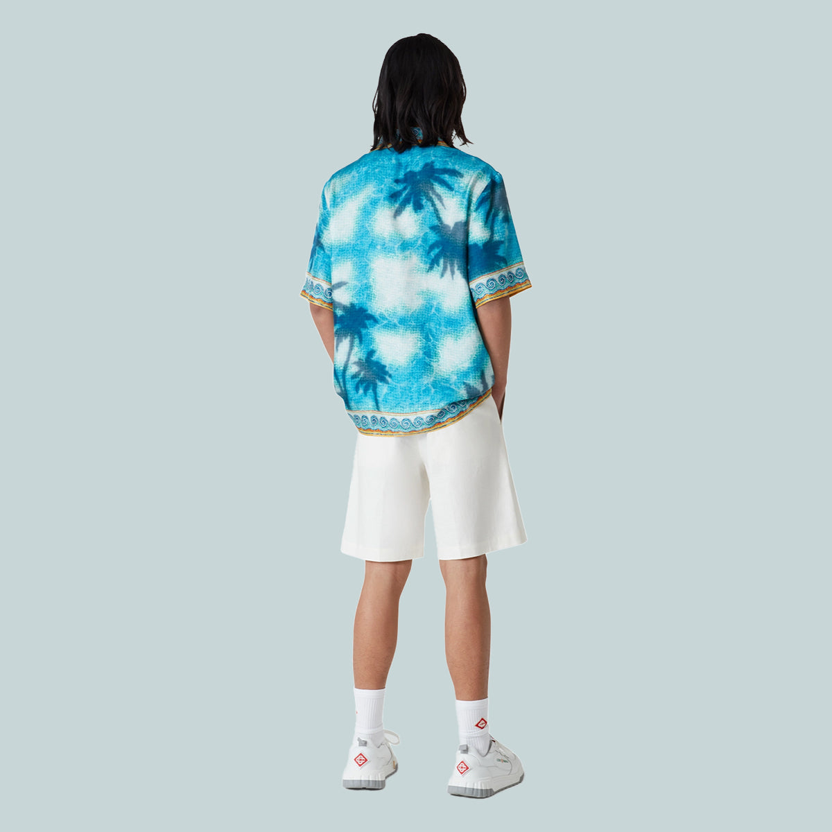 The linen pleated shorts are a tailored design crafted from a cotton blend fabric. Completed with zip closure, adjustable waistband featuring interlocking corozo buttons and belt loops, slanted side pockets, and back flap pockets with button closure.