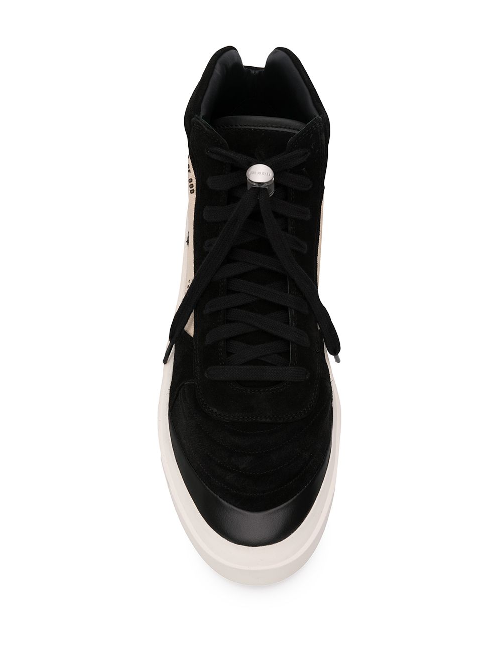 The Logo high-top sneaker is crafted from calf leather in sane suede with a cotton logo-print high top sneaker. Featuring a rounded toe, foldover top, front laces and toggle fasting with a white rubber sole. Embellished with leather trims and linings with a tonal embossed logo at the back of the heel.