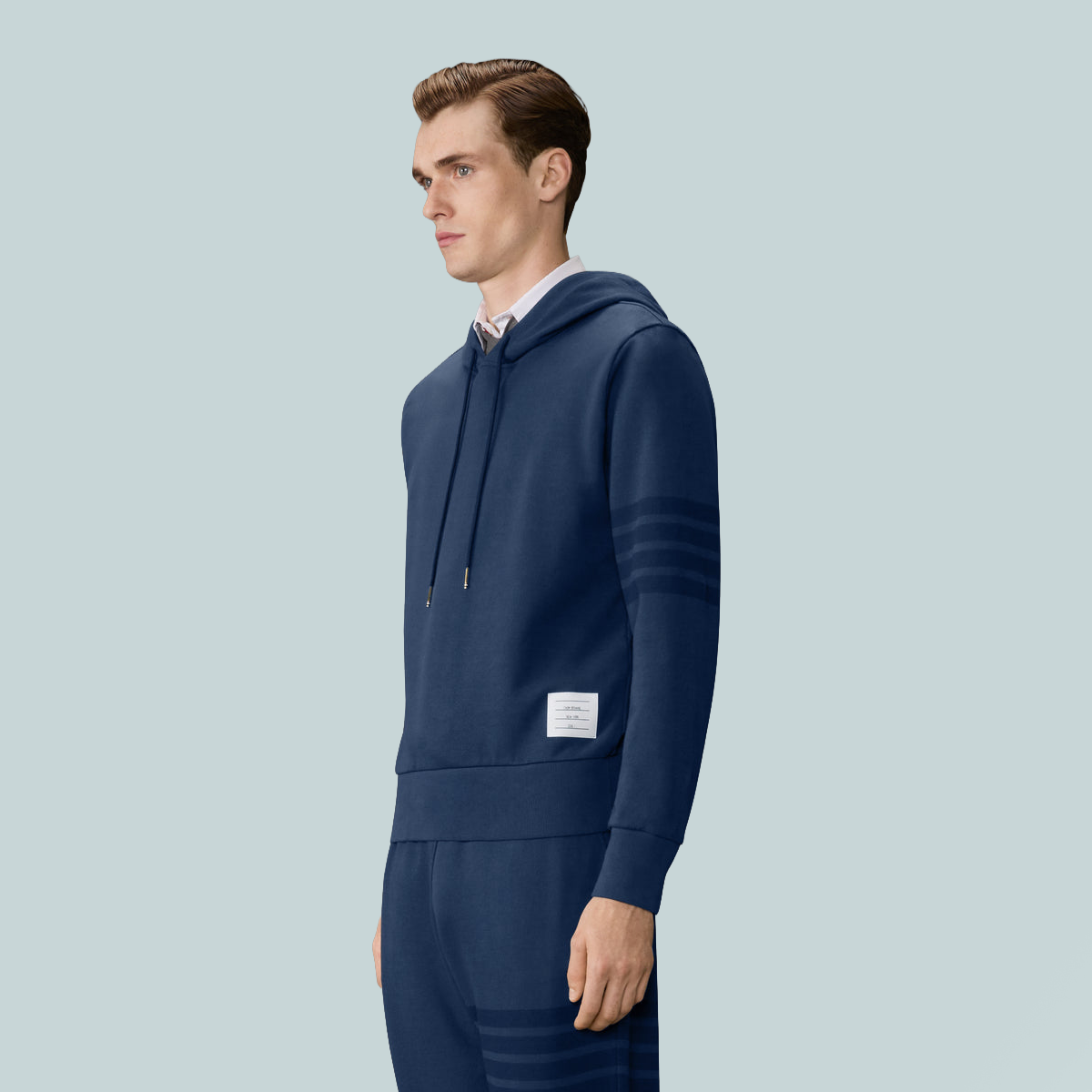 This pullover hoodie reinterprets athletic uniform codes through a refined lens. The overdyed 4-bar detailing adds tonal dimension and visual subtlety to the iconic motif. Coordinate with the Loopback Overdyed 4-Bar Sweatpants.