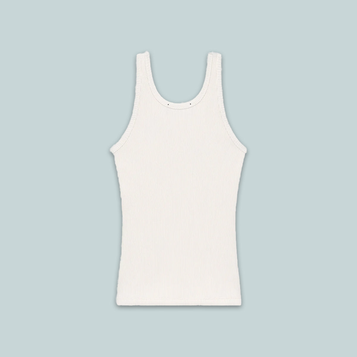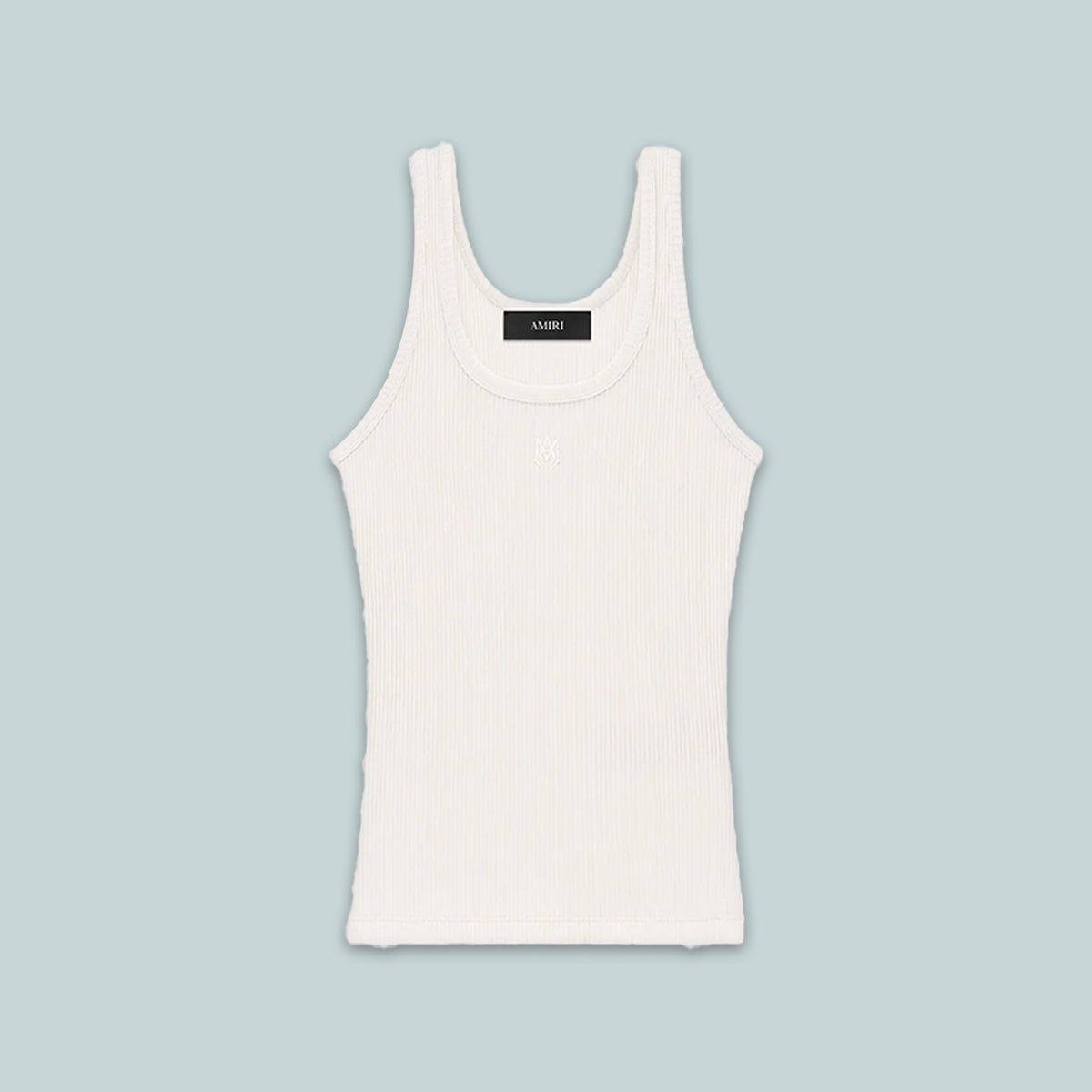 Womenswear introduces versatile silhouettes enhanced by house iconography. The MA embroidery tank is designed in stretch cotton rib with rib accents and the embroidered ma icon.
