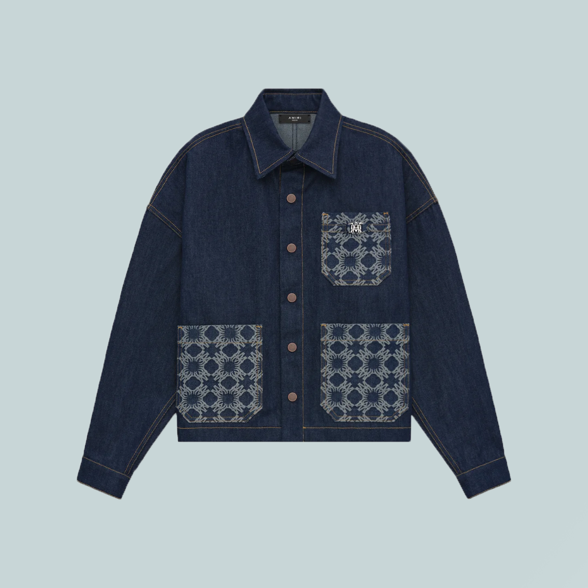 For Pre-Spring 2025, MA Quad monogram print takes on new meaning in heritage denim silhouettes. The MA Quad Workwear Jacket features MA Quad monogram denim pockets and is finished with contrast topstitching.