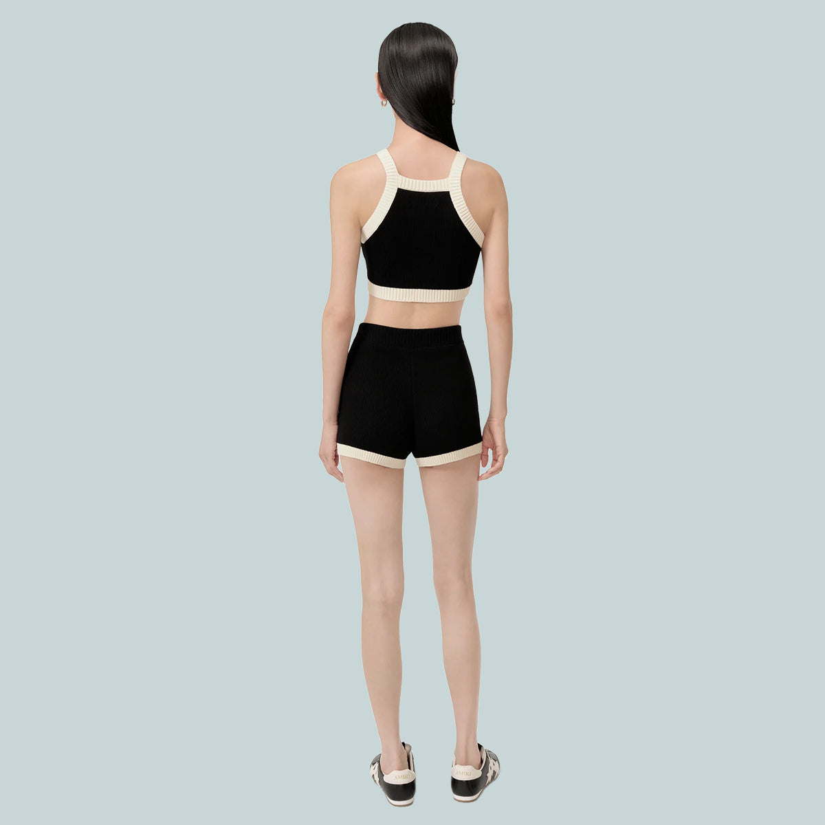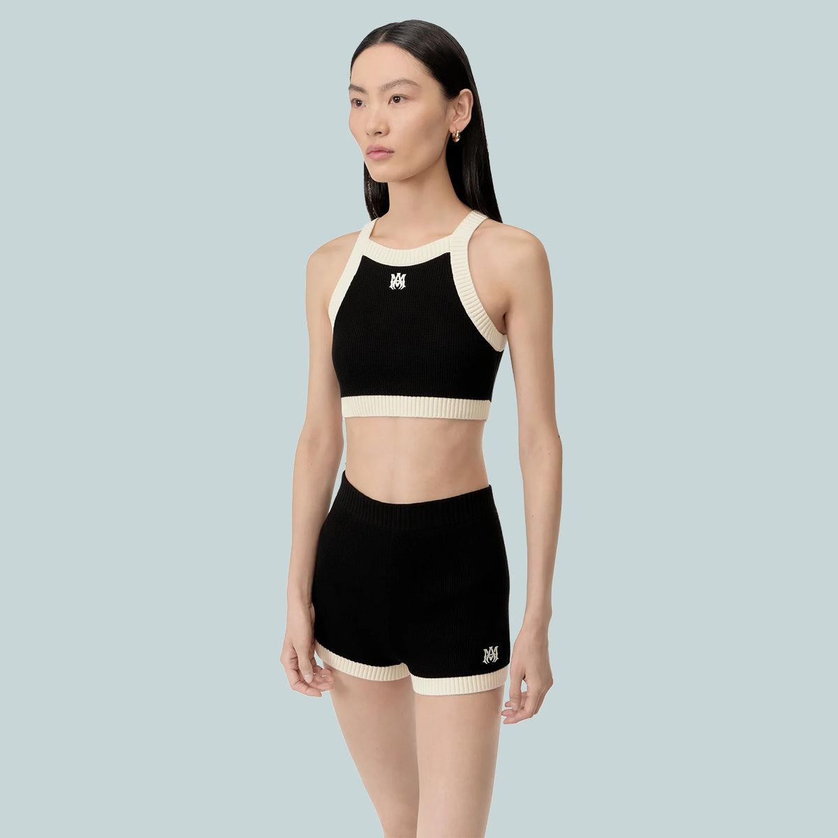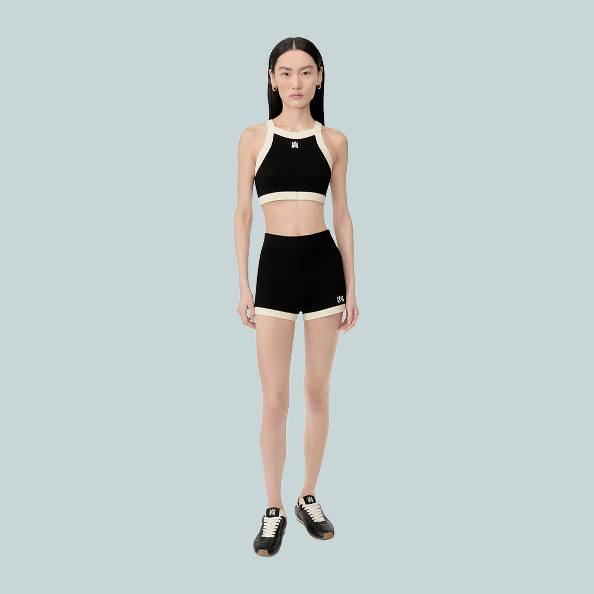 Pre-Fall 2025 womenswear introduces versatile silhouettes enhanced by house iconography. The MA Short is designed in fine knit cotton with rib finishes and MA icon embroidery.