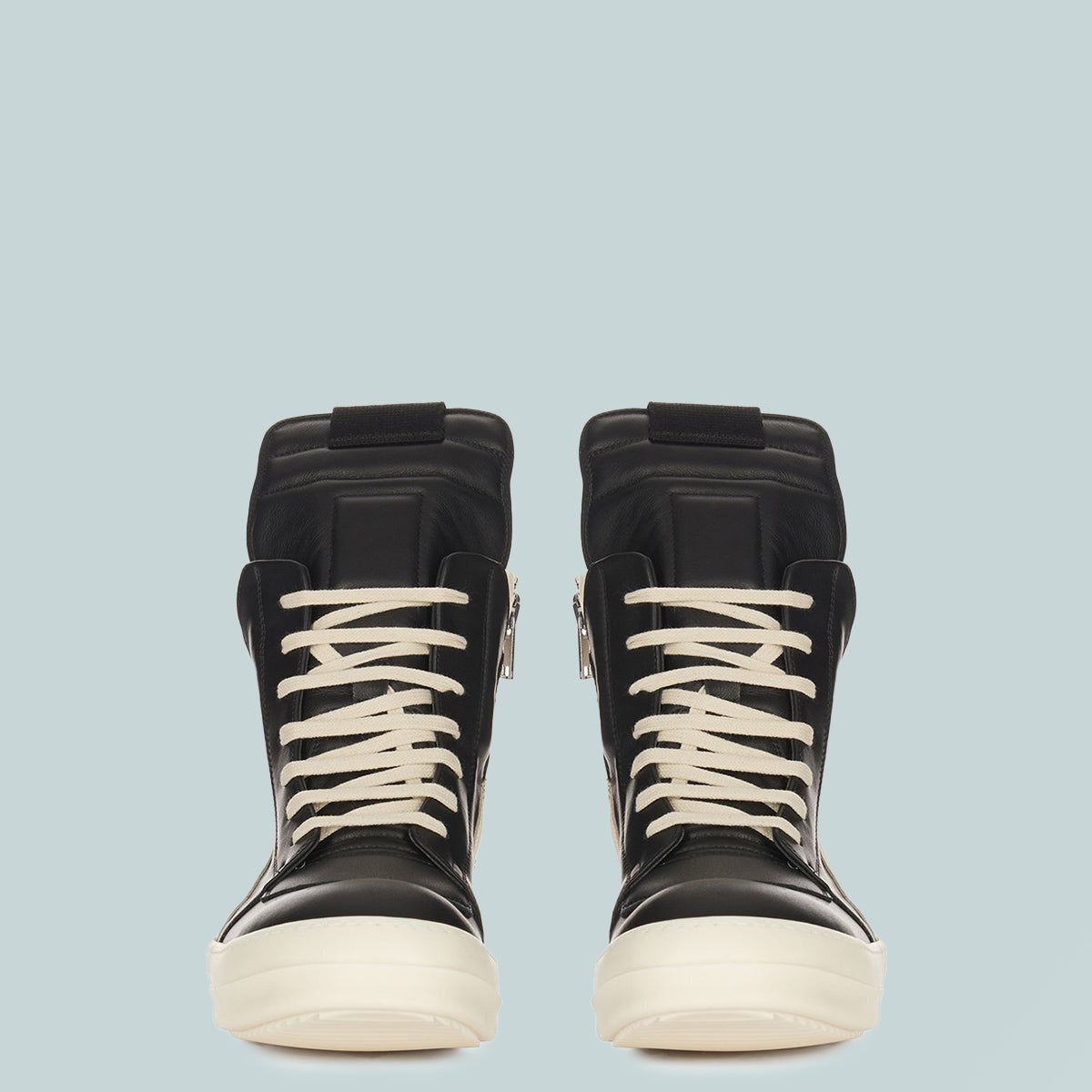 Rick Owens ss26 temple geobasket in black/milk/milk full grain cow leather