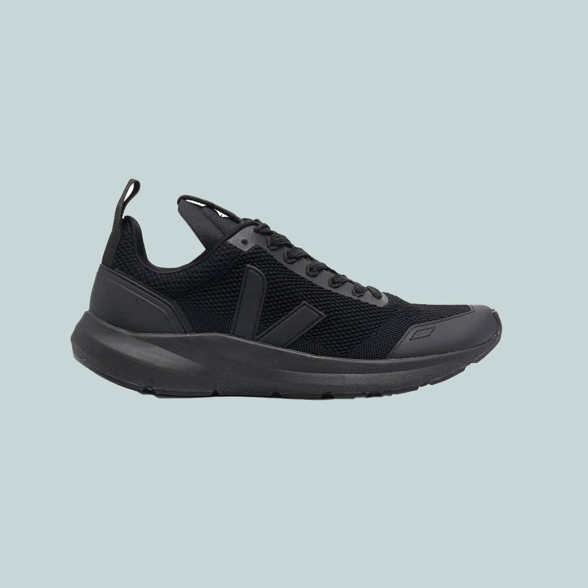 The Performance Runner in Black from the Fall/ Winter 21 VEJA x Rick Owens collaboration. Made with V-knit mesh from 100% recycled plastic bottles.