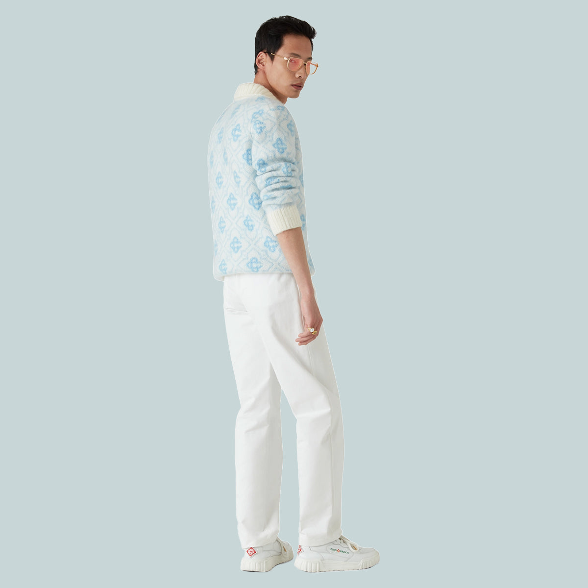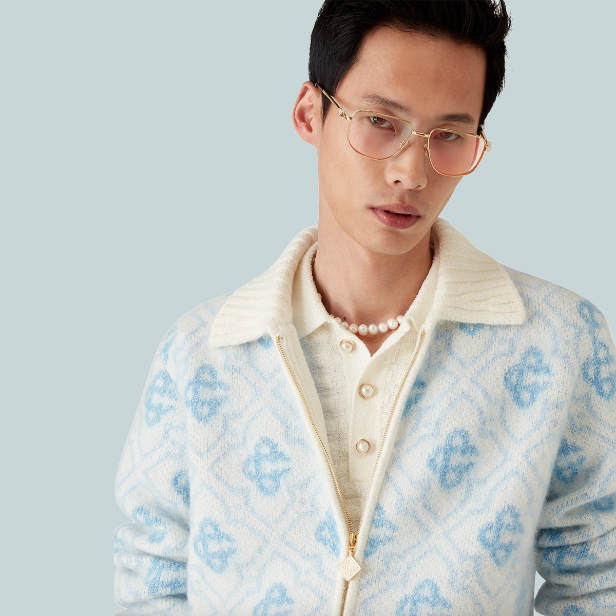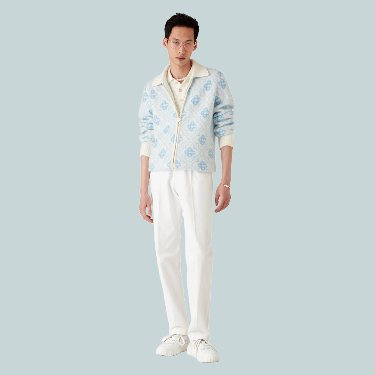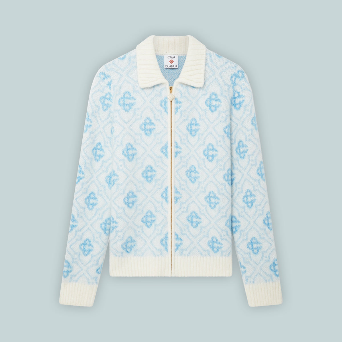 The monogram mohair zip jumper is a long-sleeve monogram design crafted from a mohair fabric. Completed with a zip closure, signature diamond logo zipper tab, rib collar, cuffs, and hem.