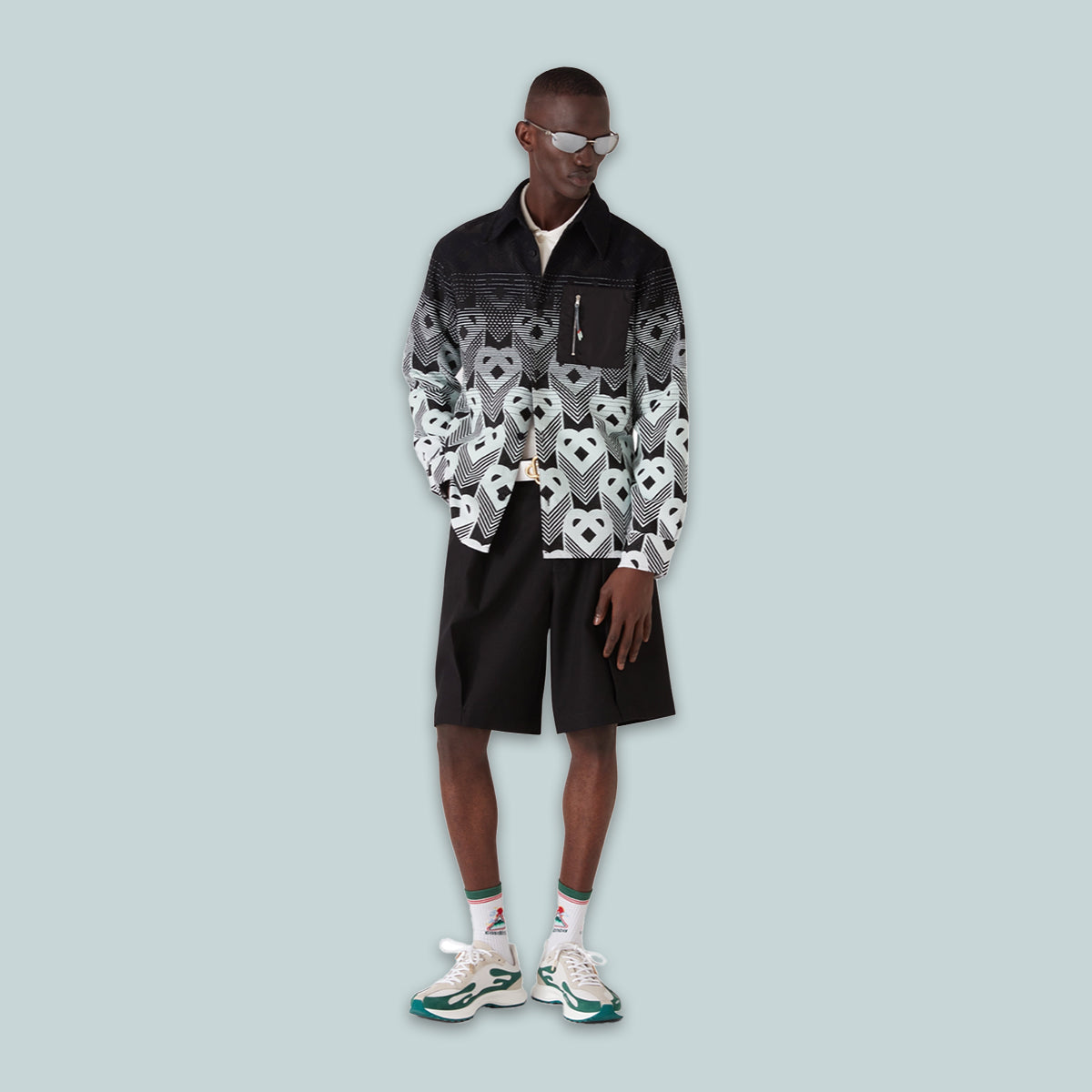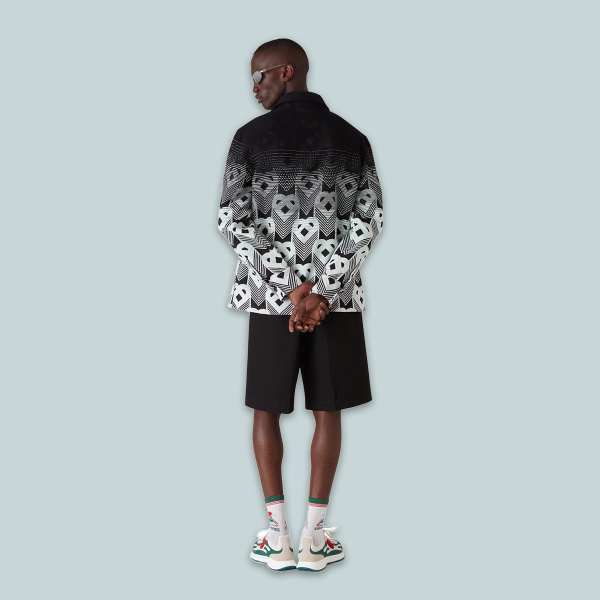 The Monogram gradient shacket is a long-sleeve design crafted from a jacquard boucle fabric. Completed with a collar, a breast pocket, button closure, and branded gold-plated buttons.
