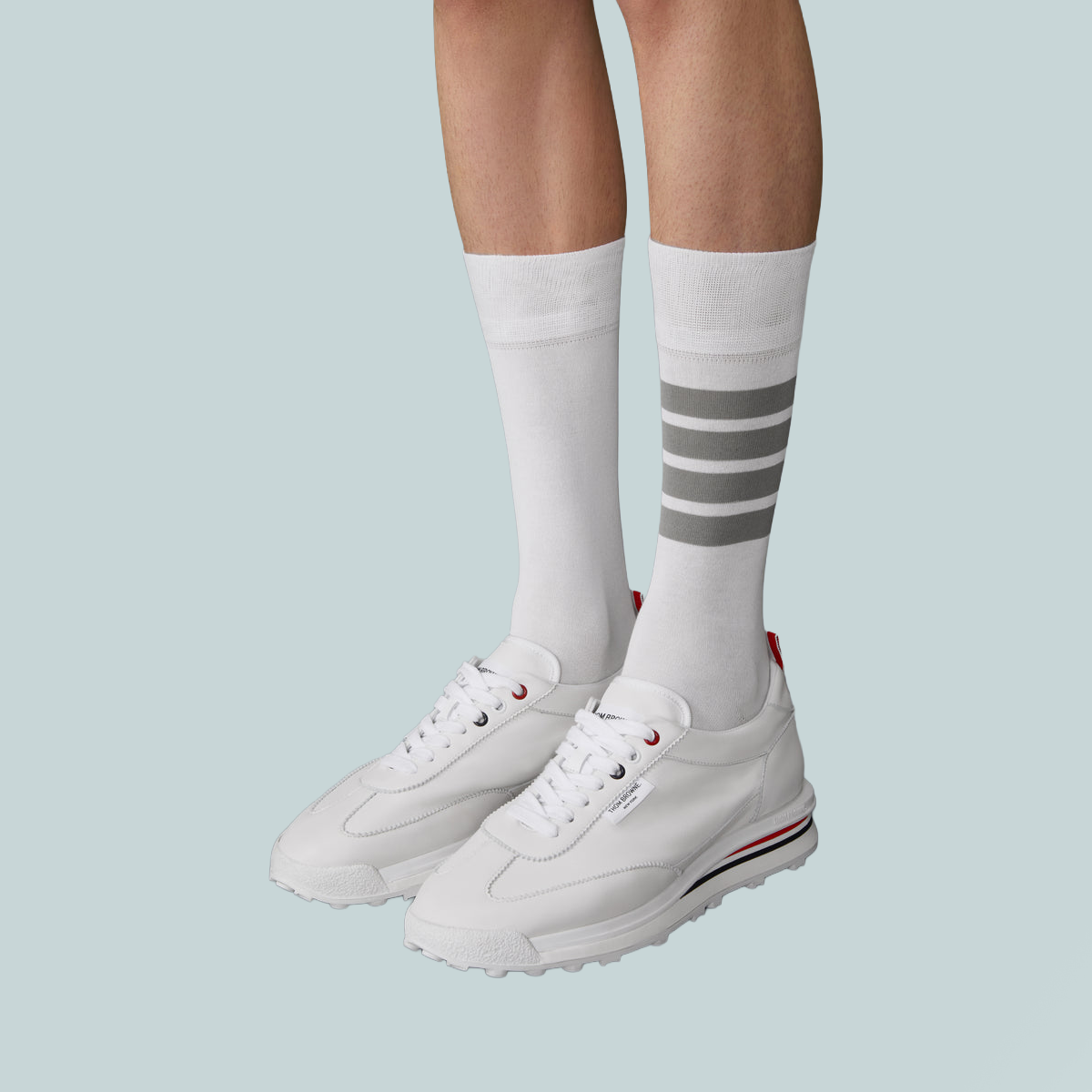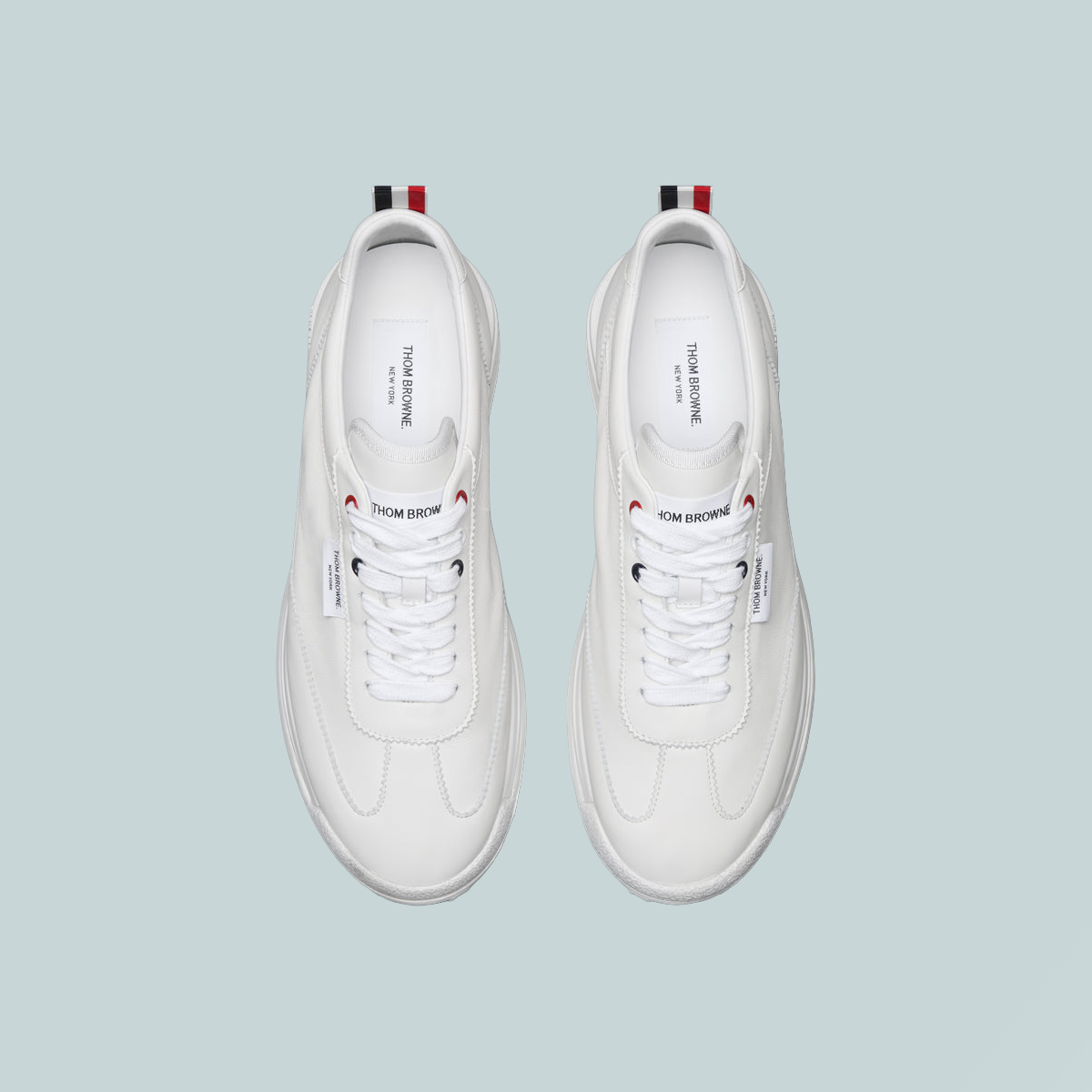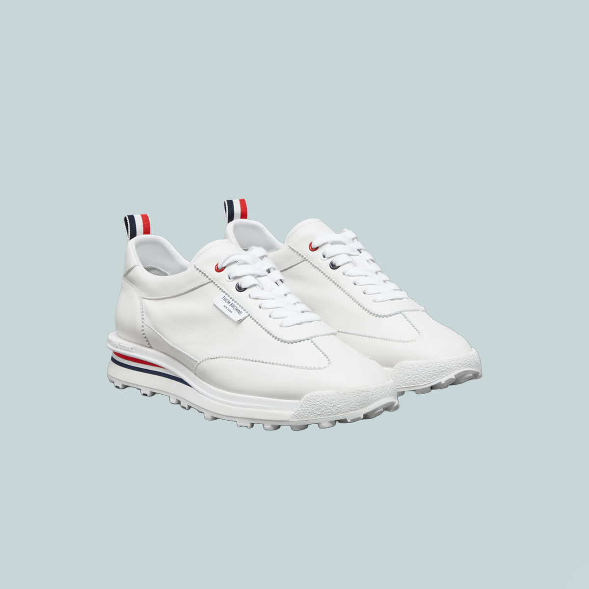 A streamlined take on athletic styling. This Tech Runner sneaker is crafted in soft nappa leather with tonal stitching and an unlined construction that enhances lightness and flexibility. Set on a sculpted sole with tricolor insert, it captures Thom Browne’s signature balance of precision, performance, and pared-back ease.