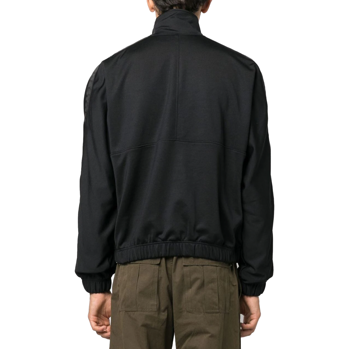 Black track jacket with zip frontal closure. Heron Preston orange logo parch sewn at sleeves.